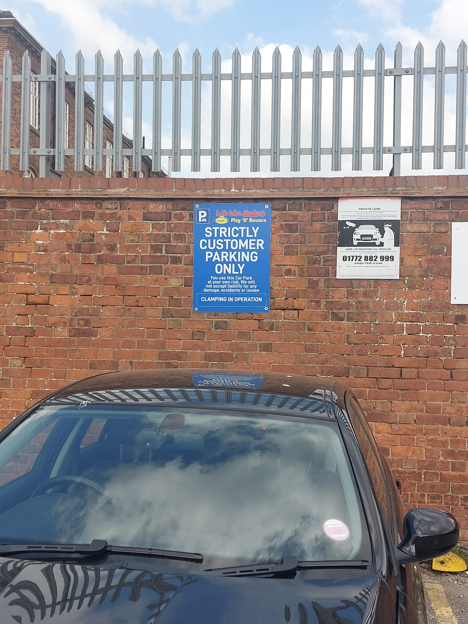 32. I had parked in the Little Subs customer car park like many times previously. I went in to enquire about a party then left. The entrance to the car park had no signs. There were no prominent signs with new Terms & Conditions. As a regular customer for 8 years the car park looked the same as all previous years (with some extra bollards in exception). After going back to the car park after receiving the PCN it was found to have three contradictive signs, the most small and illegible one being Countrywide Parking Management Limited sign. This contained the minuscule Terms & Conditions which were illegible when entering in a vehicle and then walking to the premises. Please note the largest sign visible on approach read – ‘Little Subs – Play and bounce – Strictly Customers Only – Clamping in Operation’. The far more prominent sign (compared to Countrywides sign) did not have any Terms & Conditions and contradicted the other sign with threat of clamping, not a parking charge, which was made illegal under the Protection of Freedoms Act.