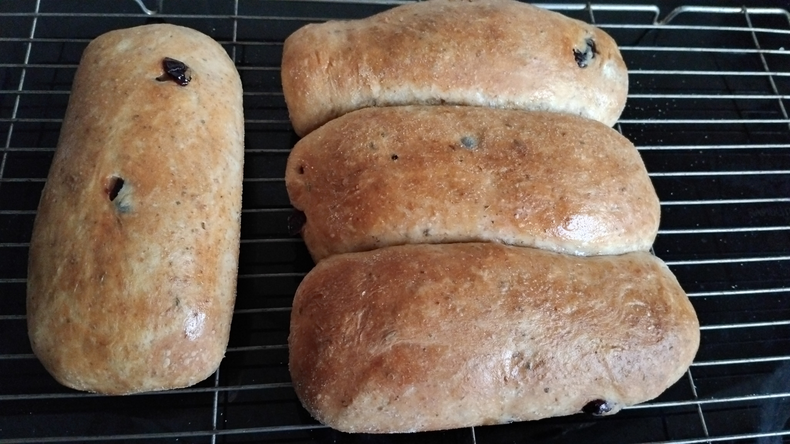 Phew, I'm pleased to report that the rolls finally rose/expanded enough on the second prove to put them in the oven. They responded quickly to the heat, and rose again as they cooked, so I think I'll have something worthwhile to use for snap tomorrow! The 3 together were cooked in a 8x8" pan and the roll on the left was put in a.... I think it's probably a 1lb loaf tin. The smell is divine. I used a mix of italian seasoning, onion granules and a bit of M&$ all greek seasoning, plus I soaked a few dried cranberries and threw them in. The flour is bread flour, plain flour and a small dollop of wholemeal. I do wish there was smell-cam, as I'm not bragging, but it smells soooooo savoury and yummy. Will these rolls last 🤣