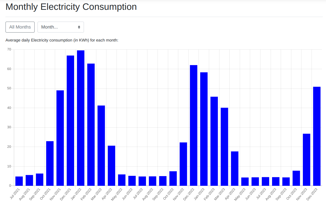 We started off pretty cold at the start of the month and the beast from the east was on my mind for a harsh winter (still could happen in the New Year) but as the month went on it became milder and we are on to use 10% less to electricity than December 2022. (All electric house)