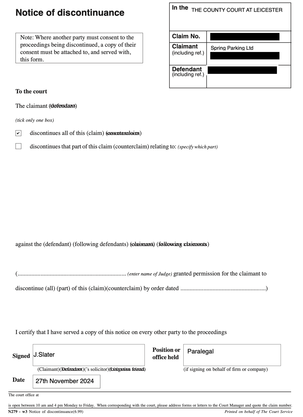 @TreeParker - please let us see a redacted copy of you Notice of Discontinuation from DCB Legal please, then I can add you to the Discontinuation thread.Please note, we are not a legal advice forum. I personally don't get involved in critiquing court case Defences/Witness Statements, so unable to help on that front. Please don't ask. .