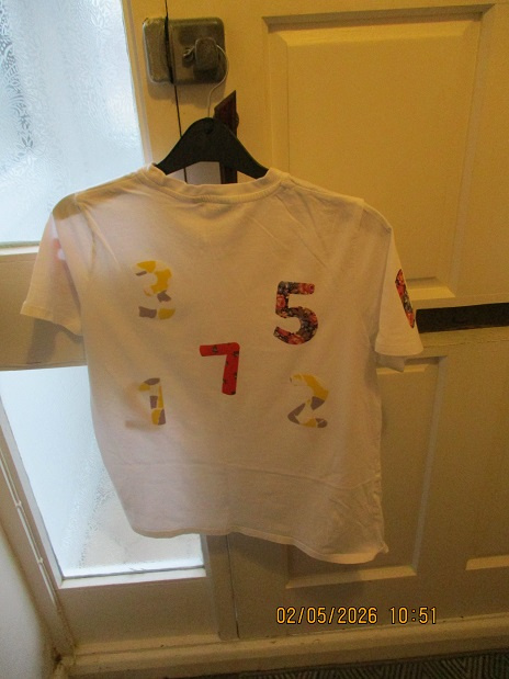 My granddaughter is in her first year of teaching at an infant school. Tomorrow is numbers day - she had a white tee shirt. I appliqued numbers on using odd fabrics from my stash. No spending involved as I had bondaweb in my stash too.