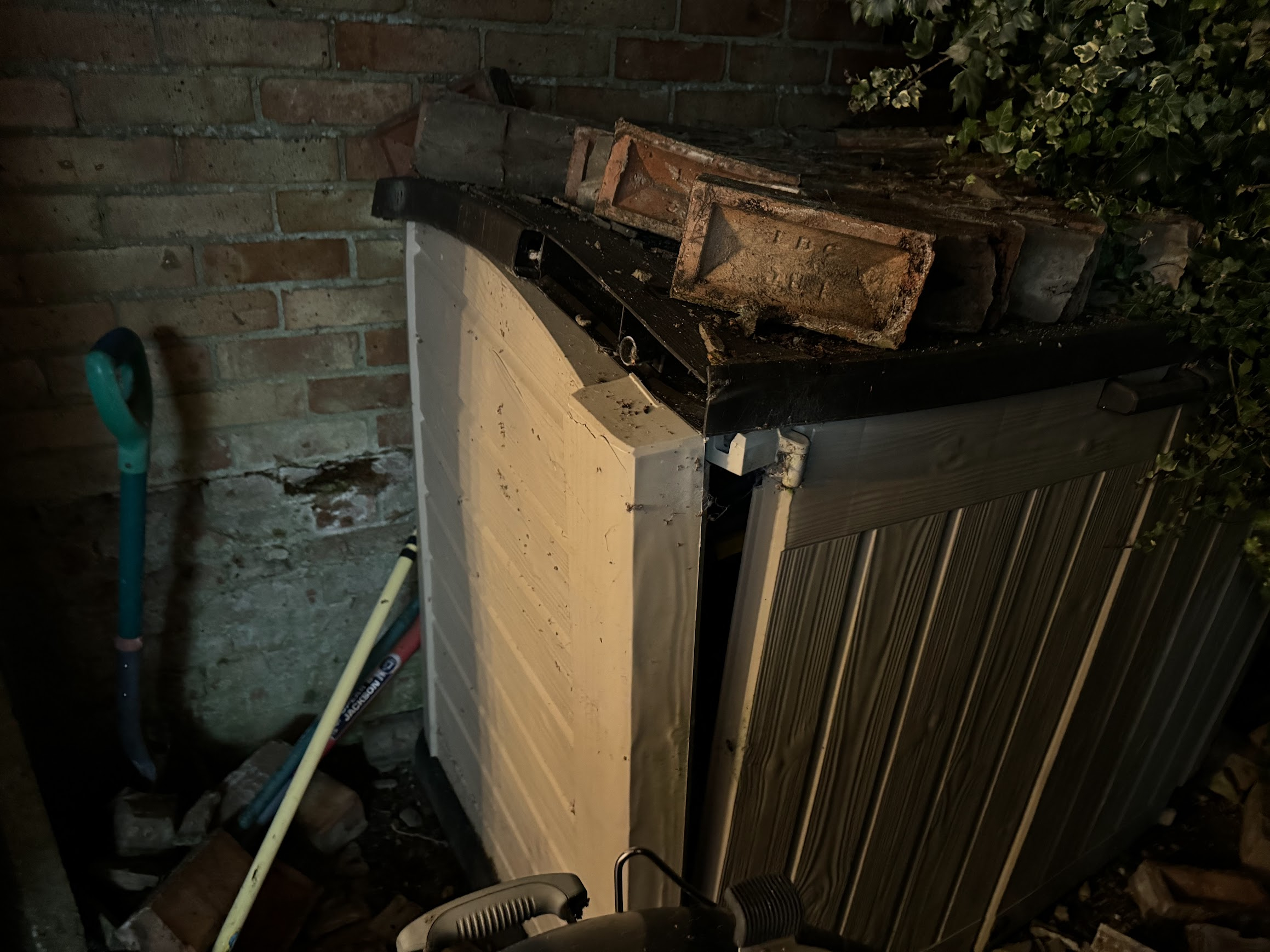 The BBQ damage is small, just a dent on the leg so I'm not overly concerned . The garden bricks landed on the garden storage unit, and while I've managed to put it somewhat back together, it has cracks all over it now. The damage to the patio door is mainly cosmetic damage to the frame but has scratches on the glass (in some places quite deep) that I imagine will eventually crack.
