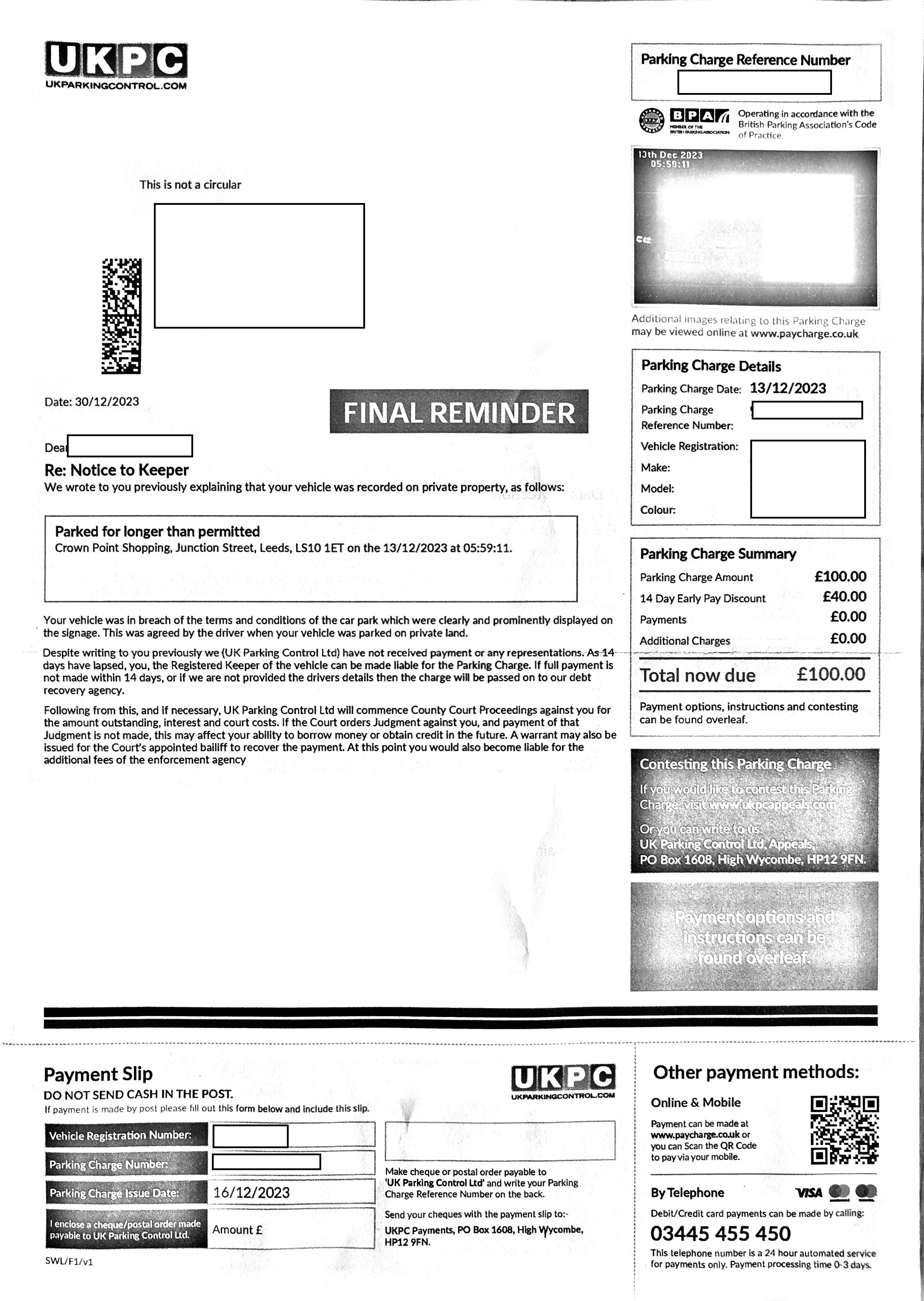 Looking for some advice on appealing a parking charge from UKPC (issued 16/12/23):