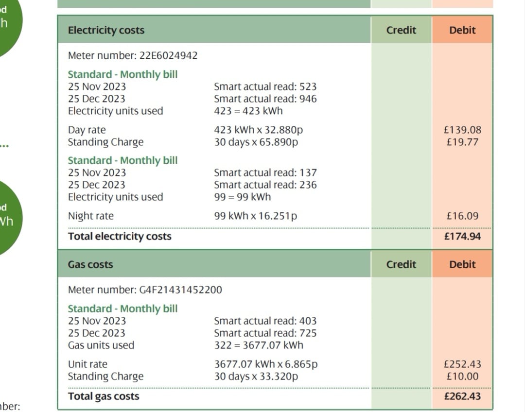 I don't know if this helps?MeteredOut said:You need to post actual usage in kWh, or share bills with actual meter readings. No-one can tell you if the amounts are correct based on the info provided.