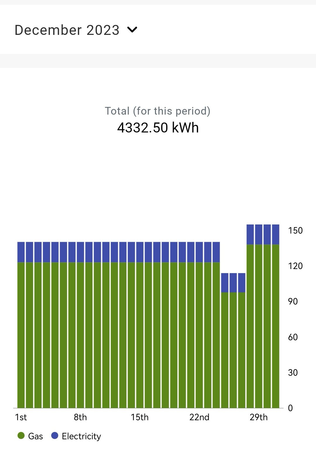Wrong. Your bills show your gas usage went up by 45% from 2529kWh to 3677kWh. Probably because of colder weather (and 30 days rather than 28).michael079 said:Again, the bills leapt from about £314 to £459 in December, even though actual gas usage didn't go up (it's always on 30).3 -