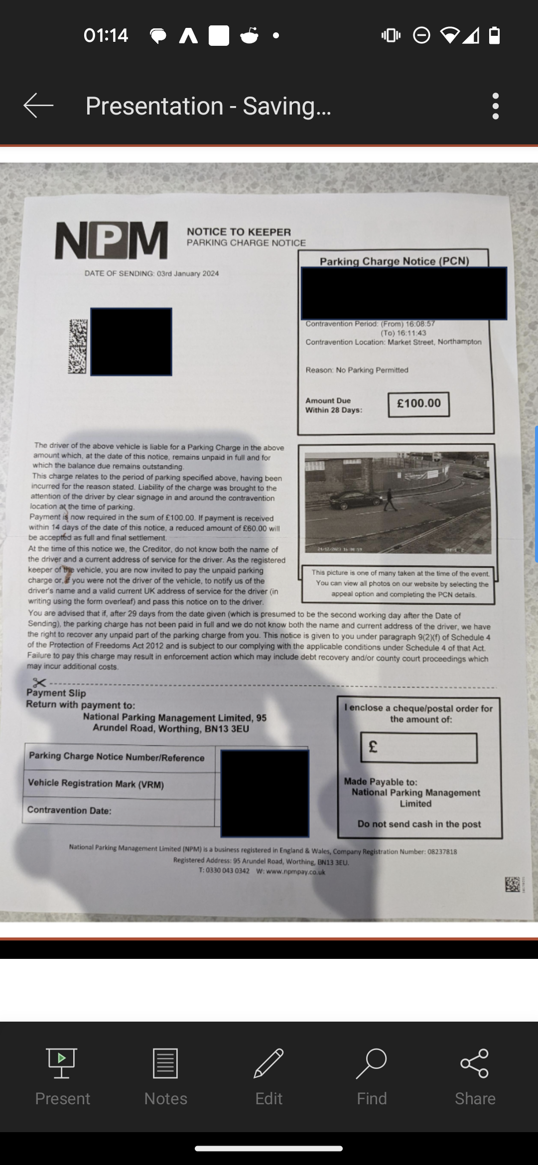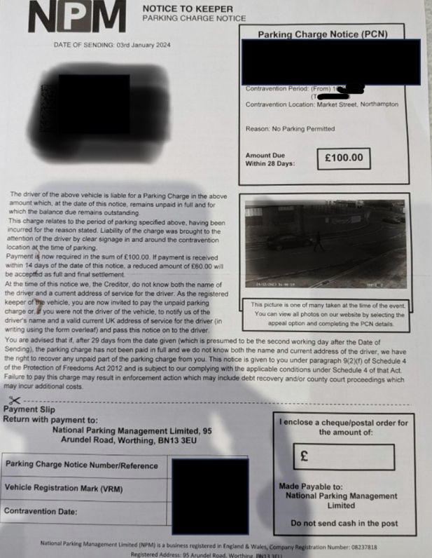 It's not very readable and you've both confirmed my point! It's actually 24th and I was umming and aahing between the two.yetneveragain said:The NtK had to have been posted by 2nd January to have been PoFA compliant. The NtK is dated 3rd January thus invalidating any reliance on PoFA to hold the RK liable.Not correct now that the OP has clarified the parking event was Xmas Eve.KeithP said:The parking date is on the picture on the PCN - 21st December 2023.