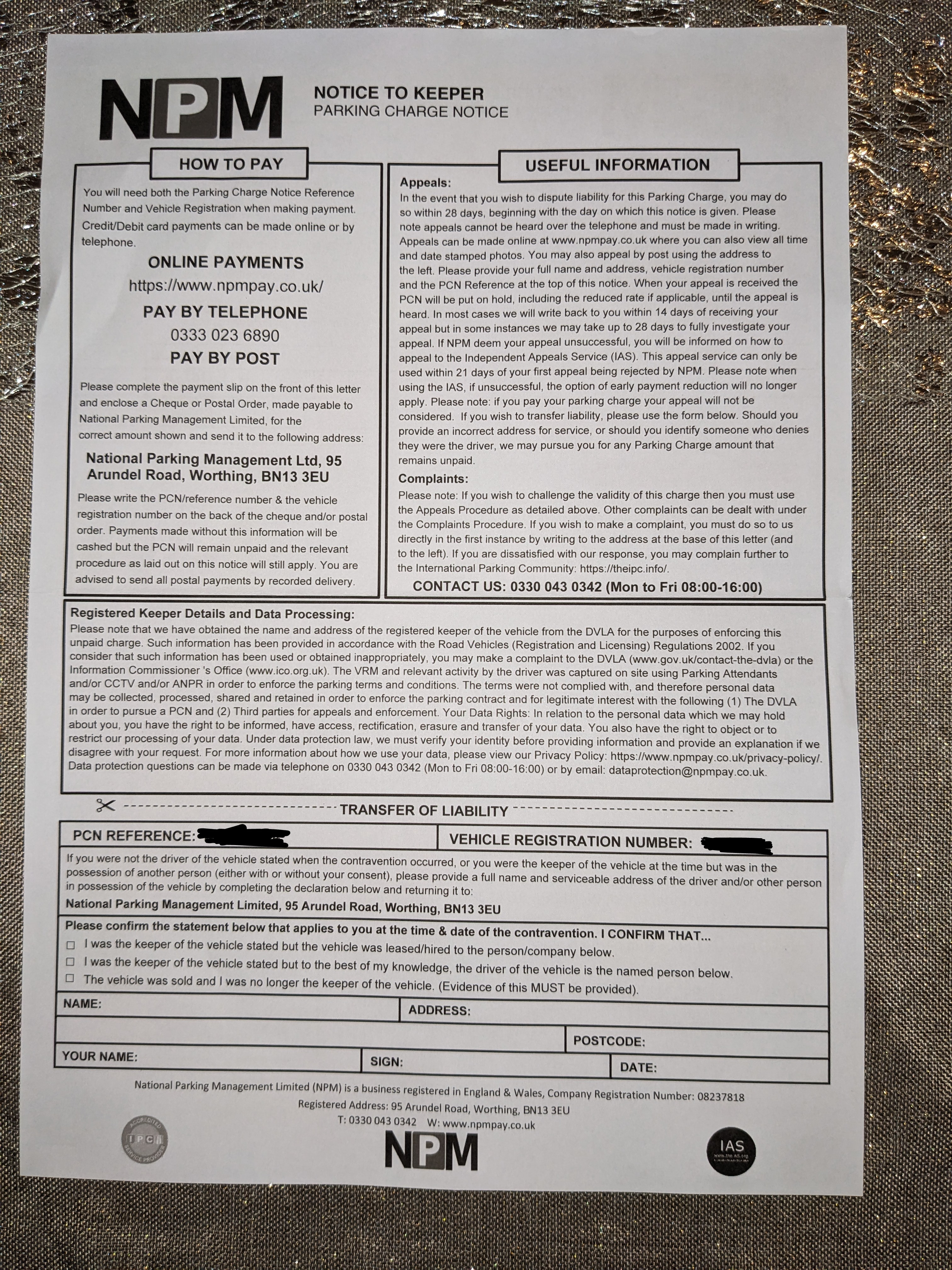 So.. I have received a (inevitable) response to my appeal, stating that NPM believes the notice was correctly issued.