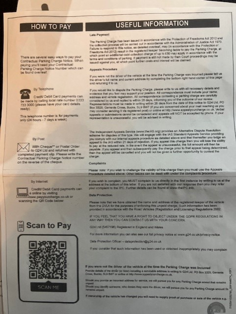 Leaseplan have written to G24 advising that the car is on long term hire to us. They do not appear to have provided the info set out in the IAS decision. As such, to my mind, I should wait 21 days from Leaseplan's notification and, assuming I hear nothing from G24, appeal on the basis that POFA 2012, Schedule 4, para 14 has not been complied with.KeithP said:So what have Leaseplan UK Ltd done about the Parking Charge Notice sent to them?