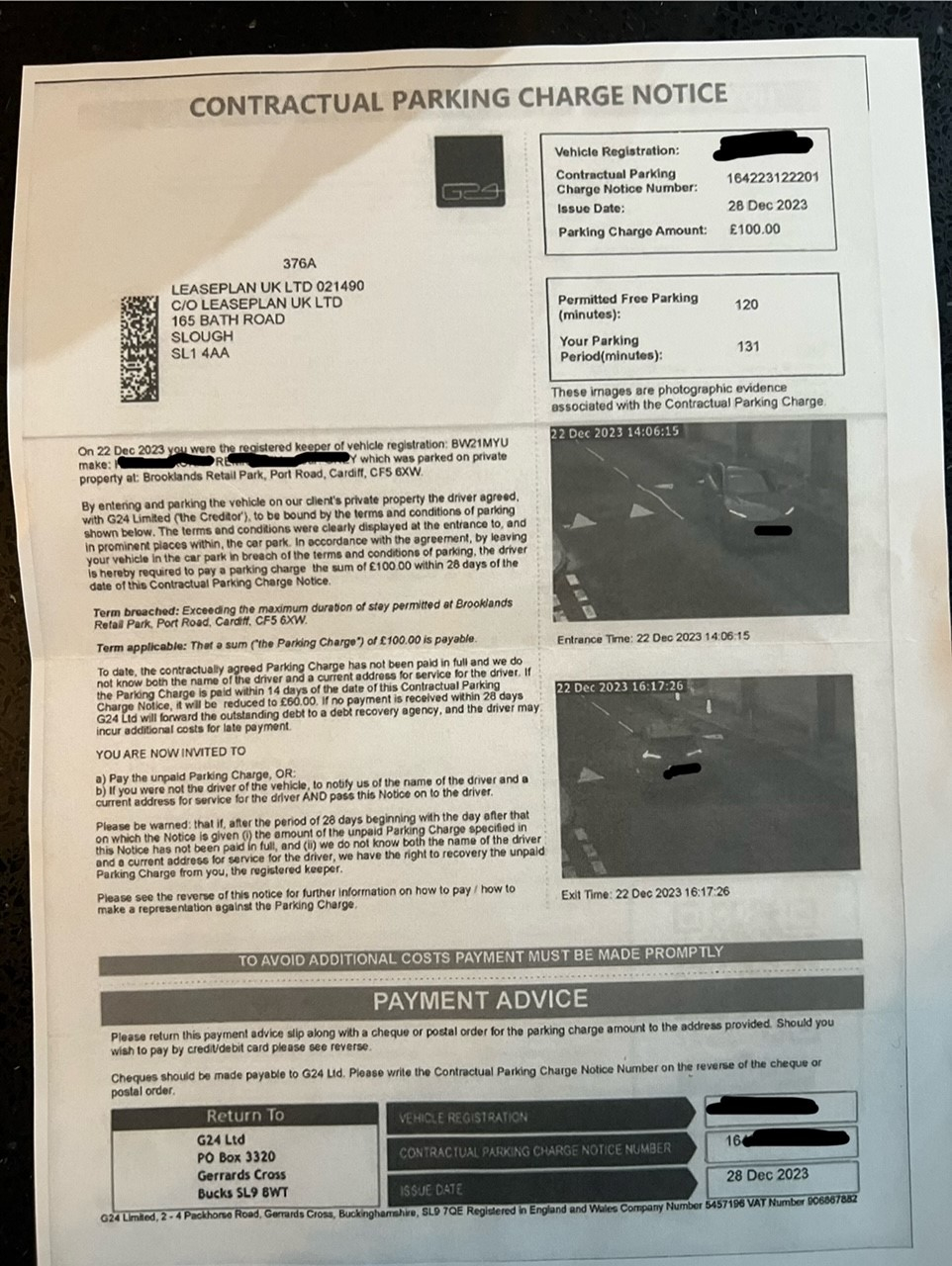 So what have Leaseplan UK Ltd done about the Parking Charge Notice sent to them?
