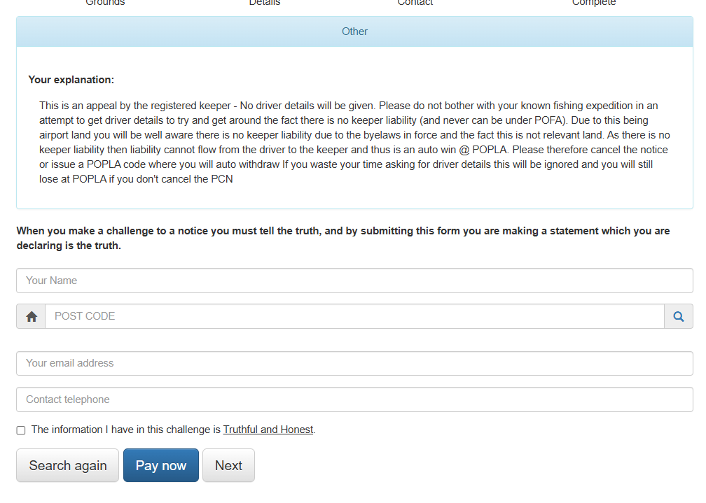 Please note: Online appeals can be made within 28 days from the date of issue of a Parking Charge (PC). Anything received after this date is considered as correspondence on the case and may not be accepted as an appeal against the Parking Charge (PC).