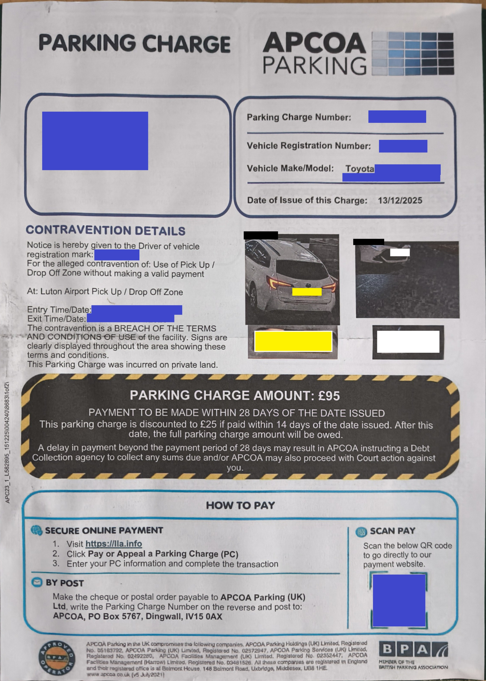 Similarly, someone from Brighton got a £100 PCN from NCP in 2023 for daring to use the drop off zone at Gatwick Airport: