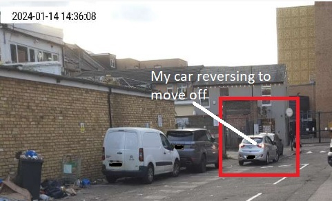 Throughout this duration, I never stepped out of my vehicle and the vehicle never crossed the bay lines of the parking bays which fall within remit of the said parking. The evidence on PPS website shows my car with reverse lights and hazard lights that I put on when my family was stepping off.