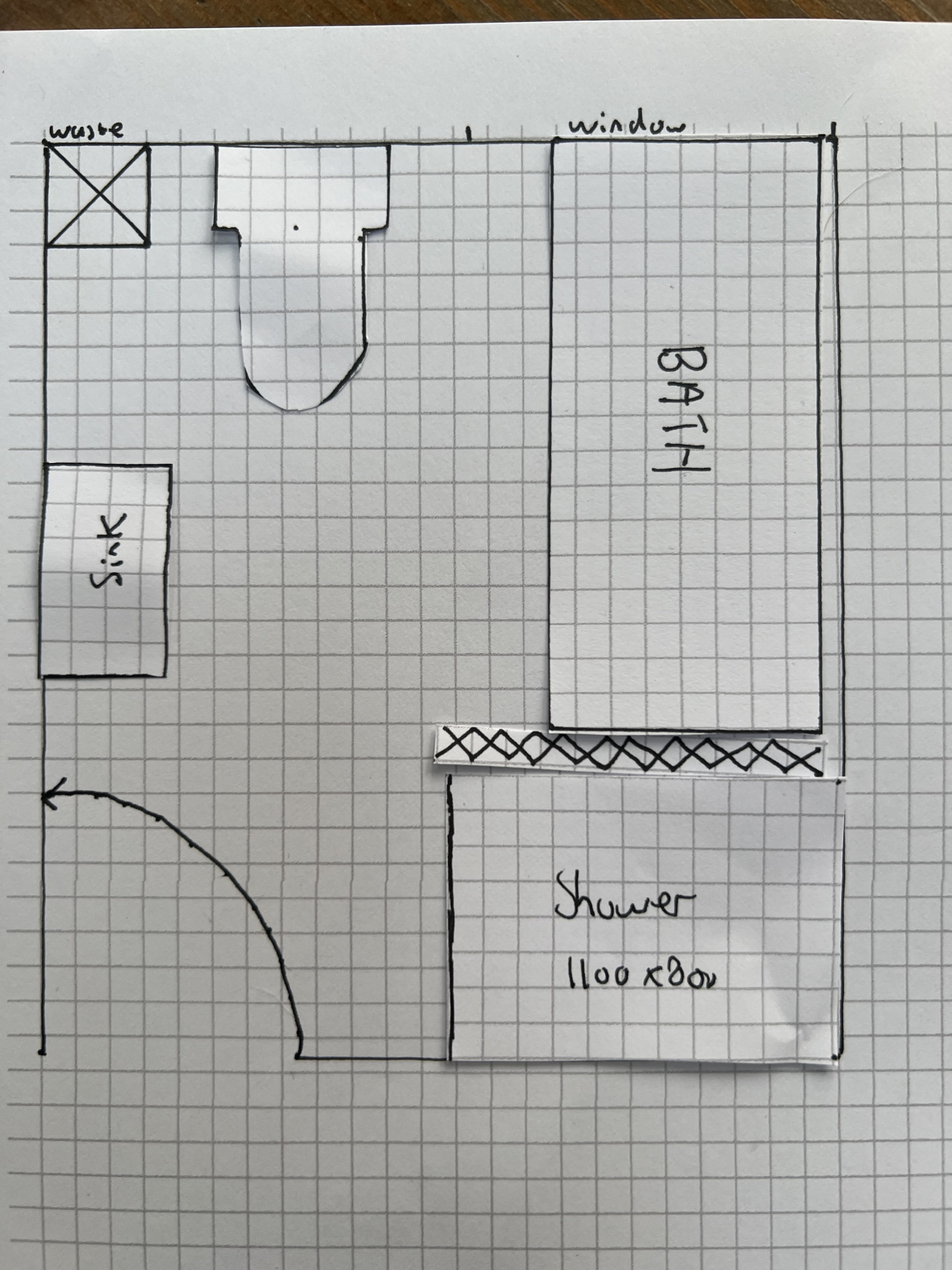 Doozergirl said: Option D, but... build a stud wall between bath and shower.I'd also put the loo against the waste and probably the sink between the loo and the bath. All of that can be boxed in nicely.You really don't want to be banging your head on a sink whilst on the loo, so I'd agree with the above.If you are doing a full makeover and going back to brick, whack some insulation on the external walls. Use something like Wedi boards for the areas that are going to be plastered rather than plasterboard. Oh, and don't forget you'll probably want a radiator in there too (where the sink is marked on plan D).