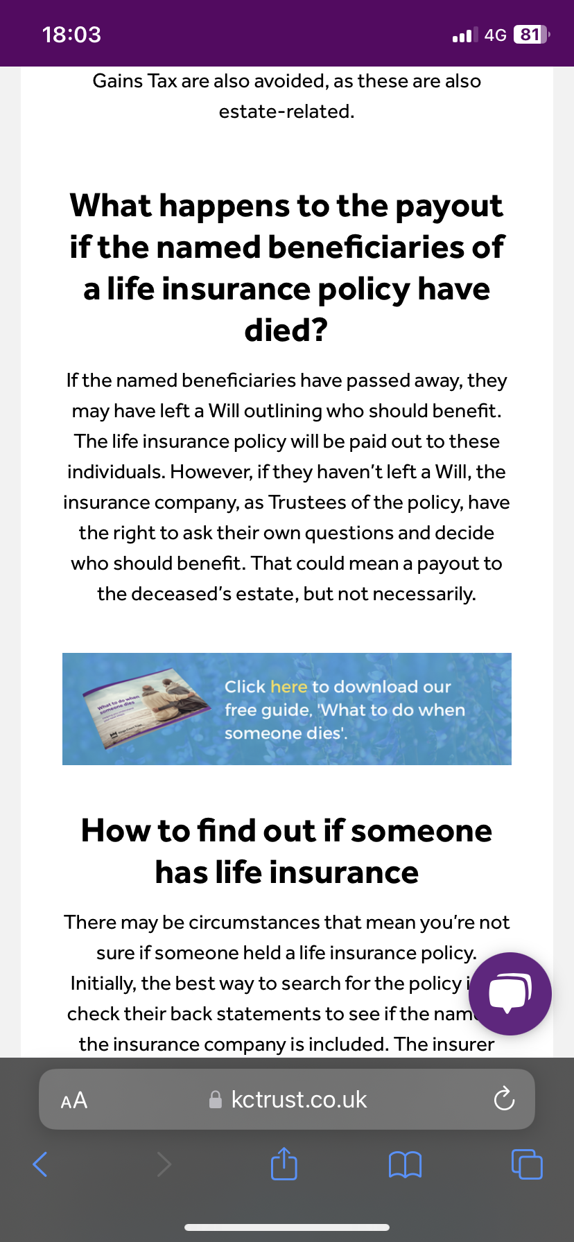 I'm a little dubious that the insurer is correct on that front; if it was dealt with in the same way as her estate, it would go to your father's estate, and from there to his partner. I won't however question the insurance company on that point as I'm not sure enough of my ground, especially as we haven't seen the Trust Deed.destroyer1979 said:The insurance company have confirmed that the policy has been left in absolute trust to my mother and should form part of her will / estate which means the payment should be made to me however they are insisting that my farthers partner should sign a letter to confirm the payment to me as she is an executor on his will
