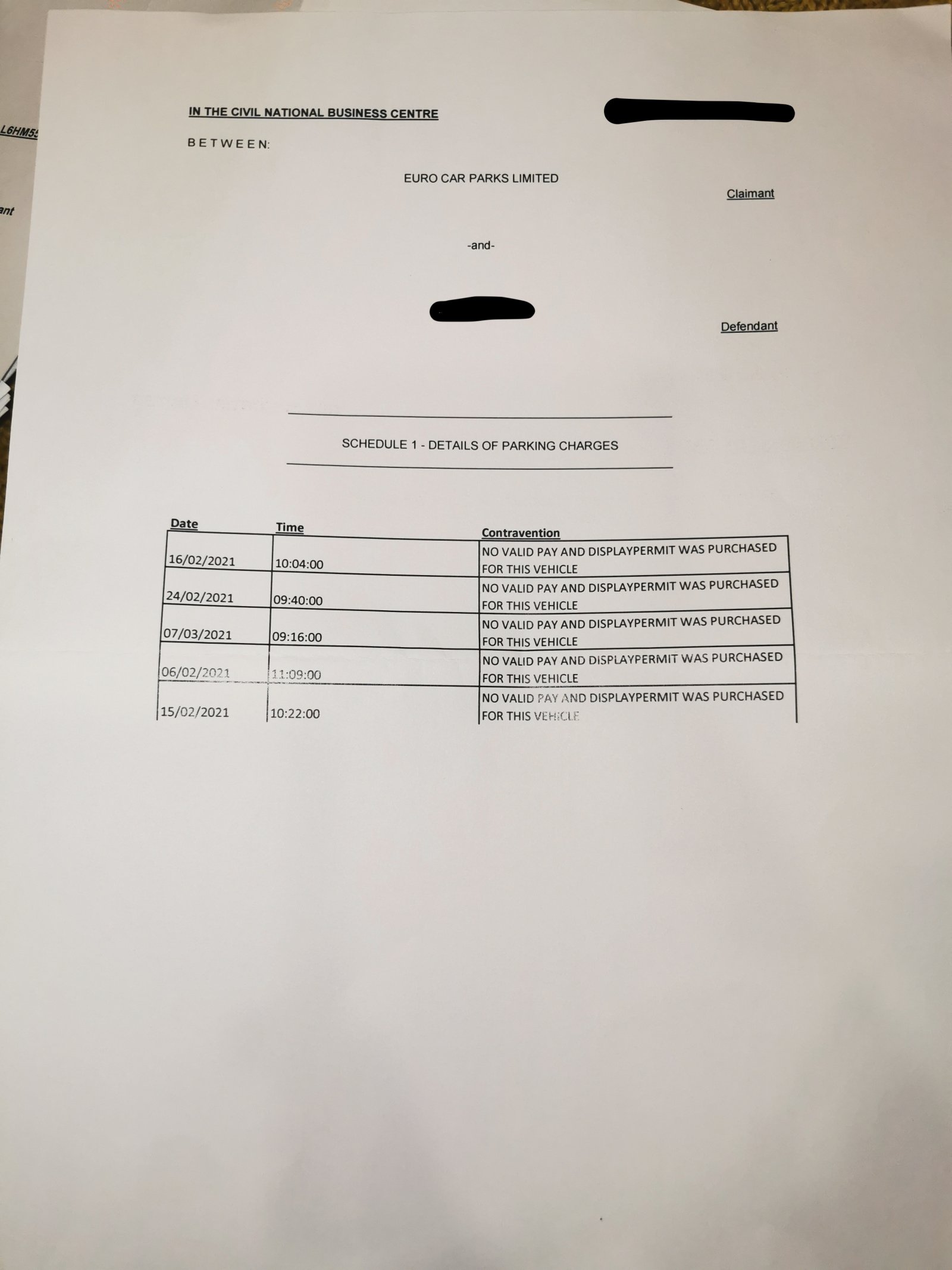 For 5 parking tickets across Feb/March 2021 they are claiming £300 in parking charges and a further £350 contractual charges incurred in the collection of the debt