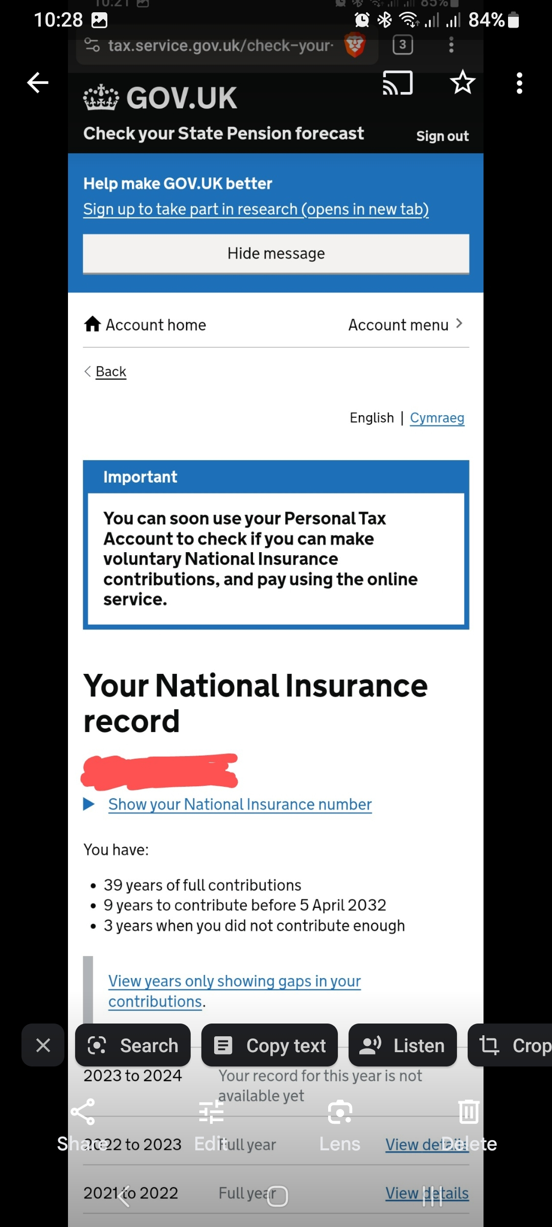 Is it possible that the government website could have gotten the number of years I have contributed to my national insurance wrong?