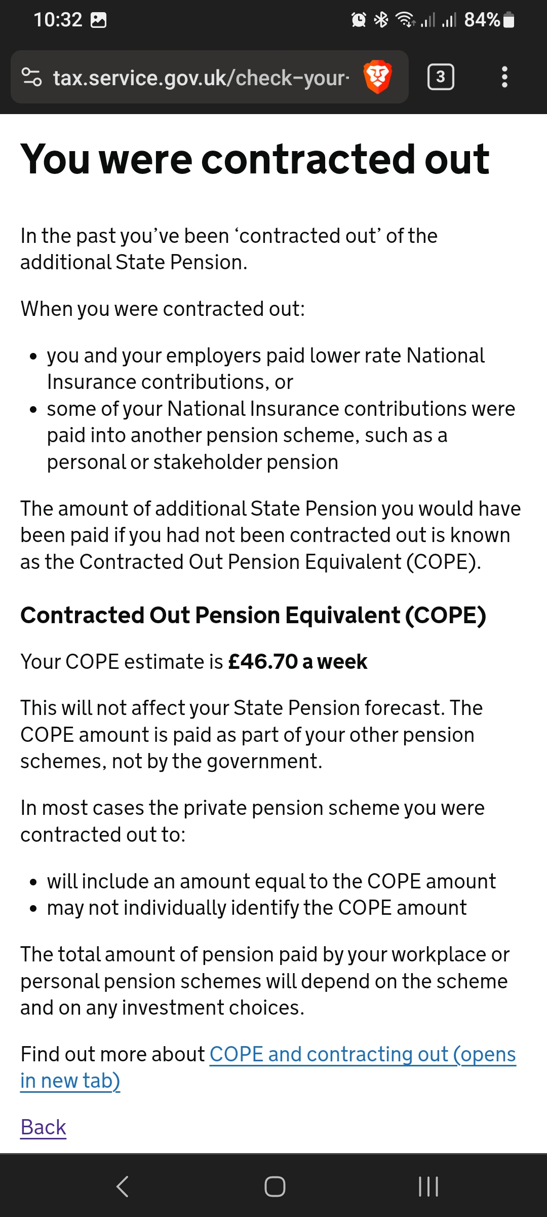 Government website says I have 39 full years and I contributions with some years contracted out and three years and not a full year.