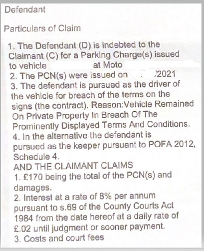 Apart from failing to comply with Civil Procedure Rule 16.4(1)(e) and Practice Direction Part 16.7.5, they have not stated under which capacity they are suing you. They can only pursue you as the keeper if they issued you an NtK that complies with PoFA. They can only pursue you as the driver if you have admitted to being the driver.