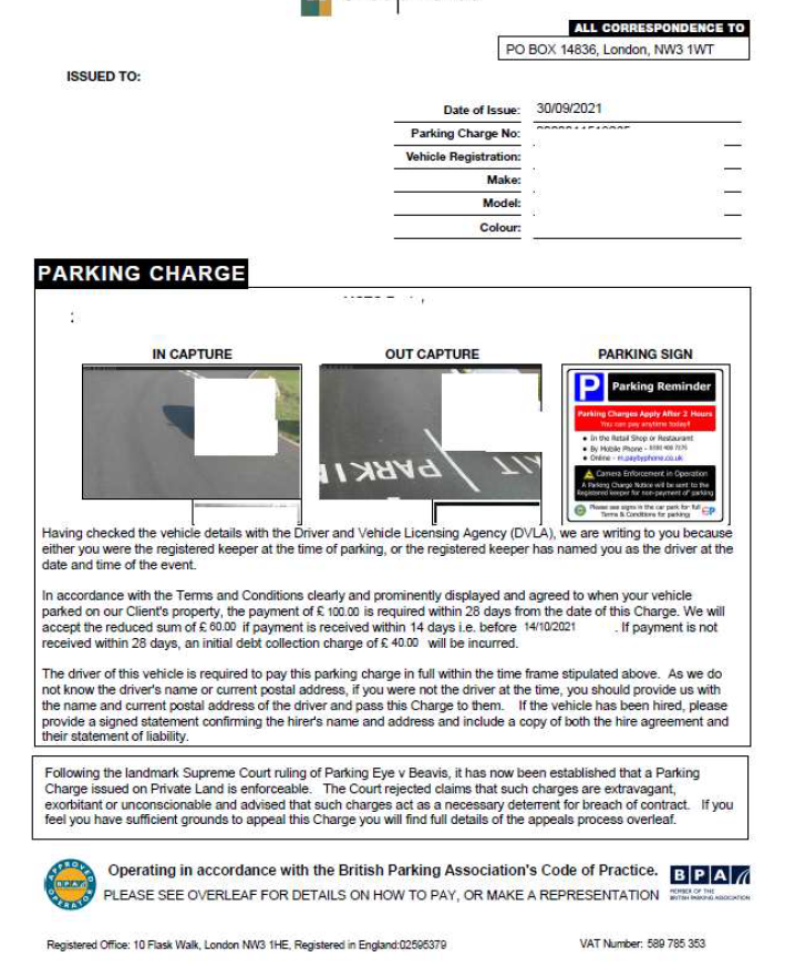 Full name of parking firm Ltd, not the solicitor!
