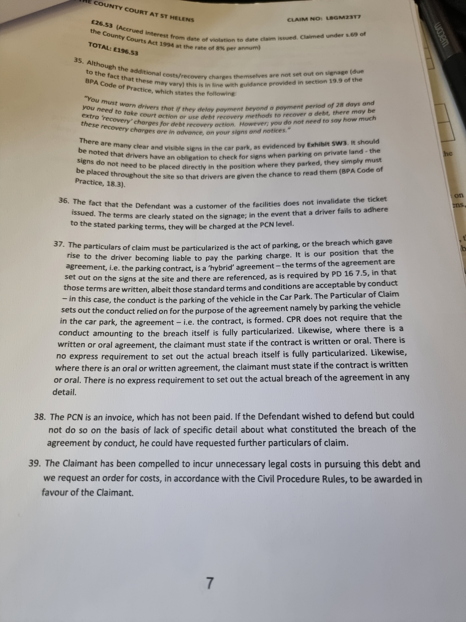 But concentrate on your main defence points for the hearing. And if you see the Judge isn't onside, move onto damage limitation mode and be really clear when arguing why it is unjustified and disproportionate for them to have added 'damages' that were never incurred.PRIVATE 'PCN'? DON'T PAY BUT DON'T IGNORE IT (except N.Ireland).