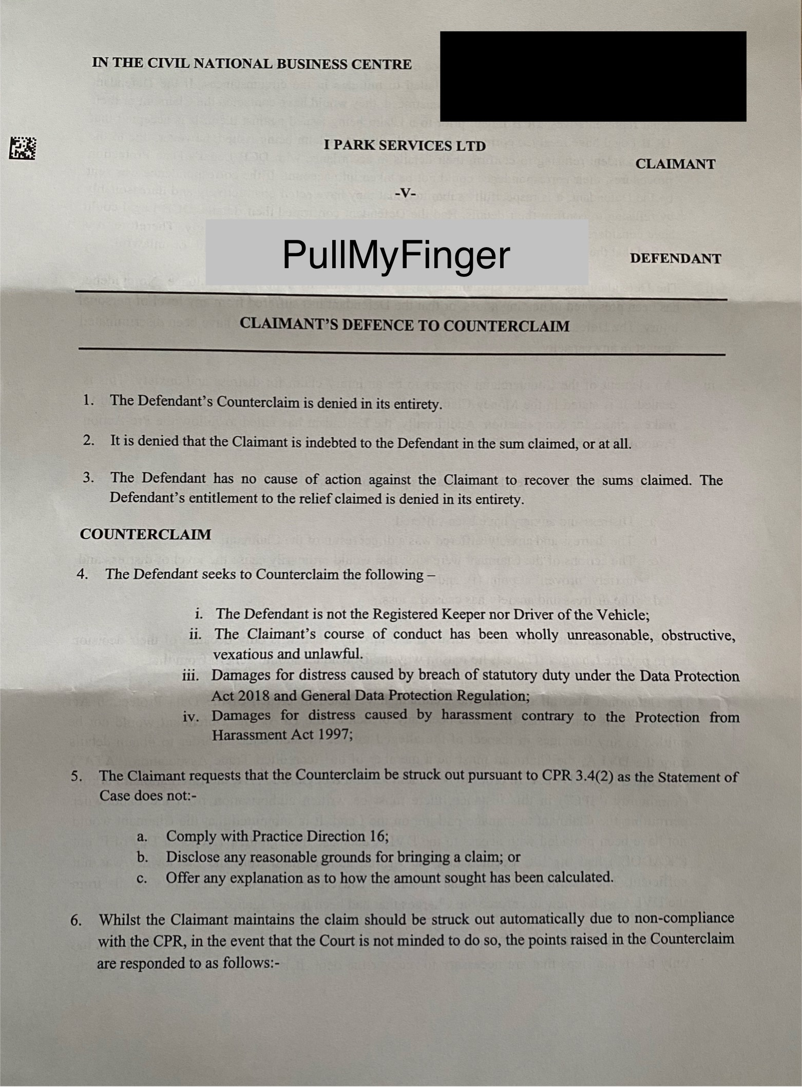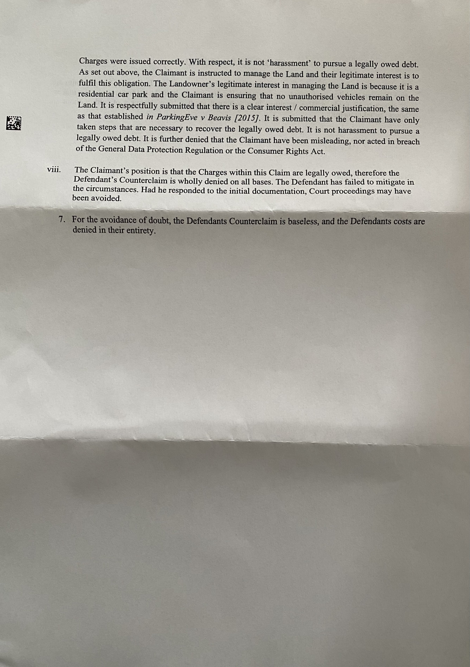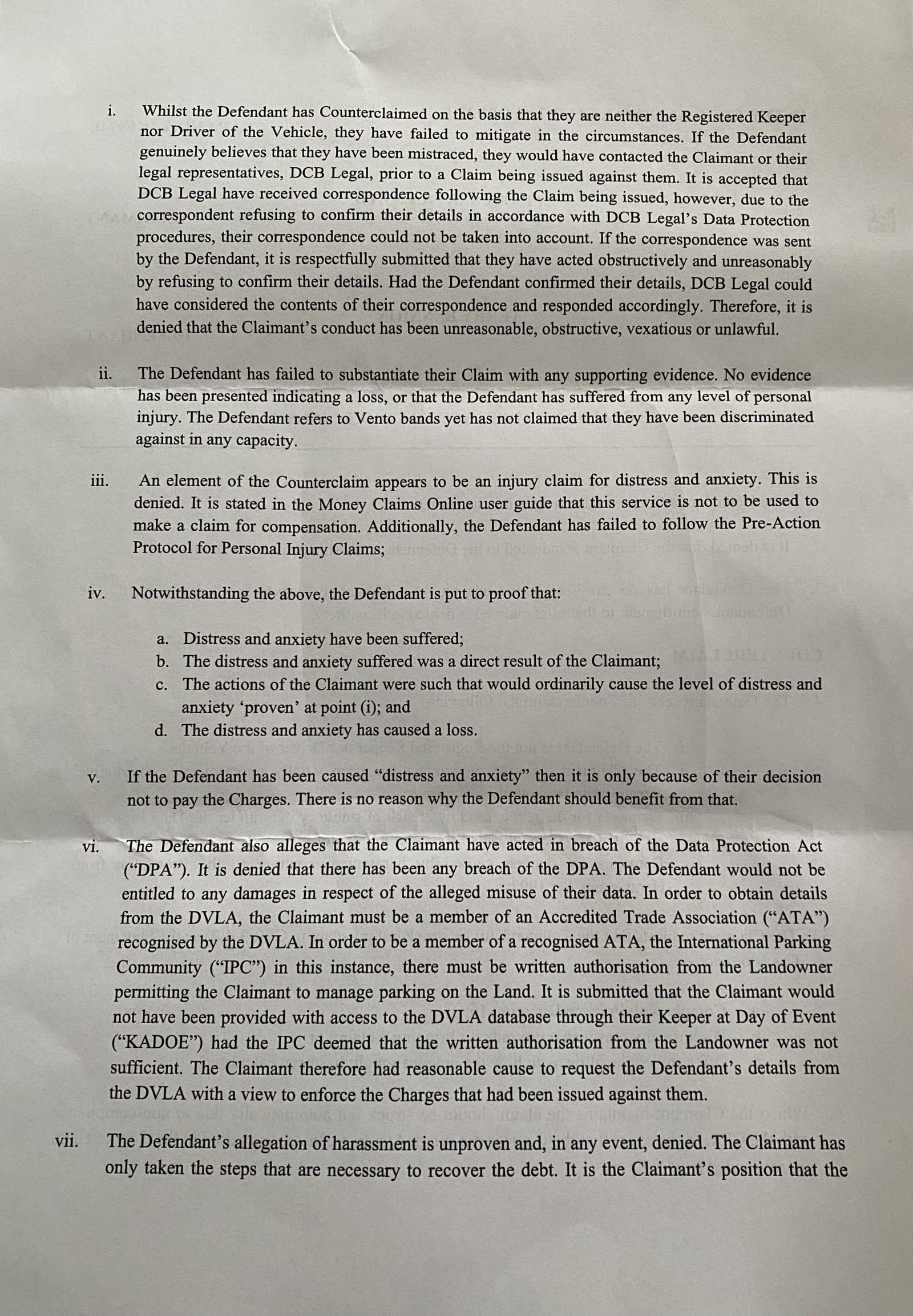 6i. They say I failed to mitigate in the circumstances, I emailed both I Park and DCBL 4 times and told them it wasn’t me.