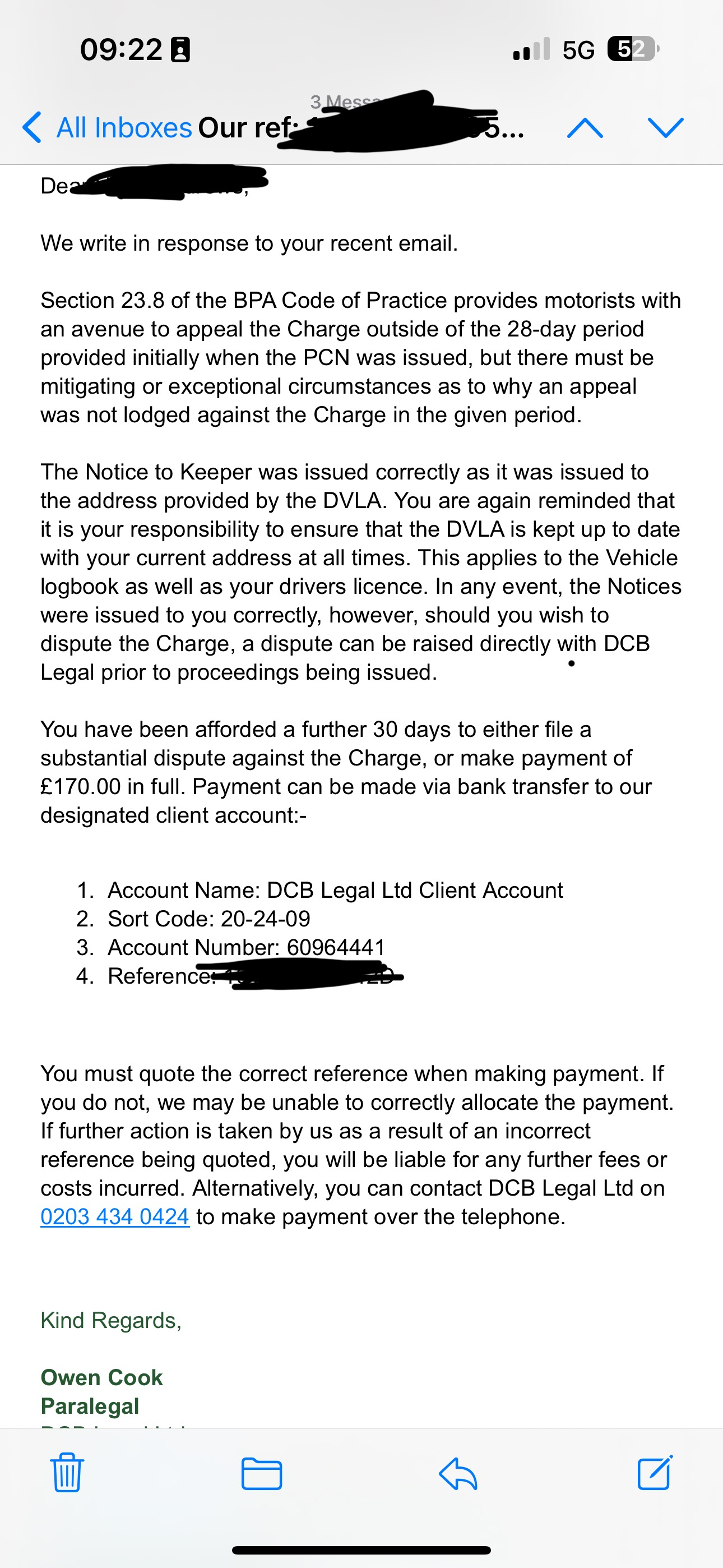 I’ve just got a response from BPA directing me to complain directly to UKPC, and from UKPC saying that they support their own decision and it’s now in the hands of DCB Legal regardless.Help!0