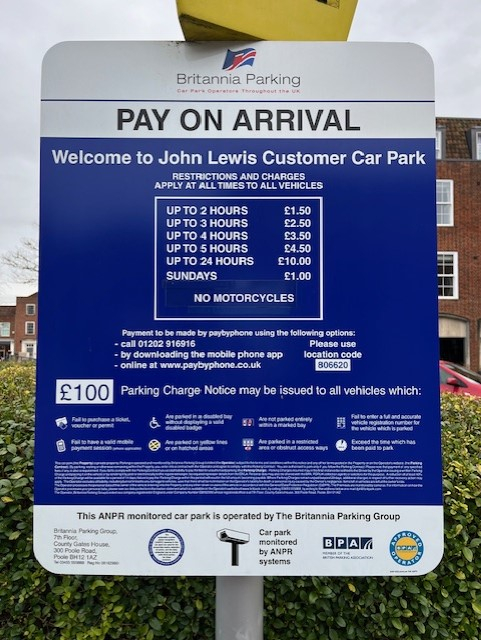The entrance sign states it is the John Lewis car park, so if you get a PCN, start with a complaint to the store manager and/or CEO.