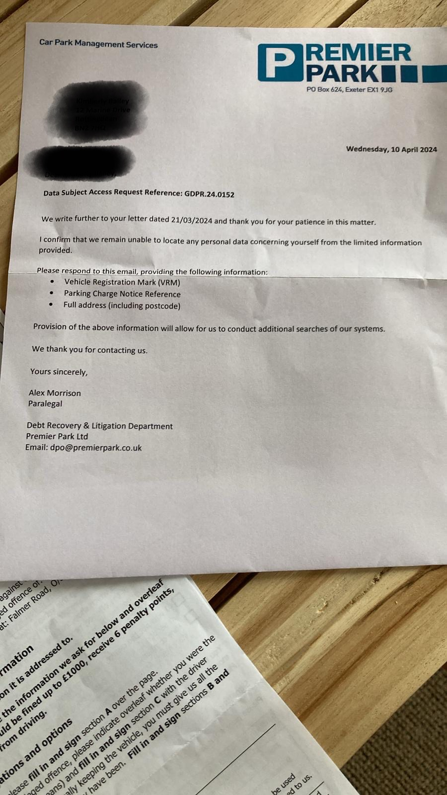 The company who issued the parking fine are called 'Premier Park LTD'