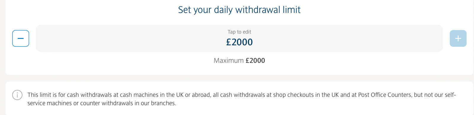 The app allows me to increase this to £2k.DullGreyGuy said: