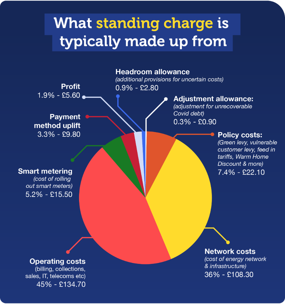 Here's a pie chart of how the cost of the standing charge is currently apportioned on a typical dual-fuel bill, according to Ofgem.