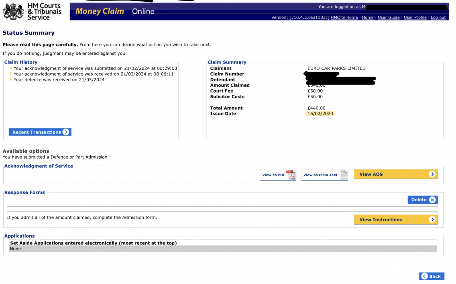 URGENT HELP! HMCTS Defence [MCOL] against PCN from Euro Car Parks at BP Connect - Gatwick Airport