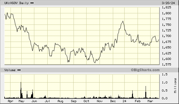 Vanguard UK Gilt UCITS ETF, UK:VGOV Advanced Chart - (LON) UK:VGOV, Vanguard UK Gilt UCITS ETF Stock Price - BigCharts.com (marketwatch.com)