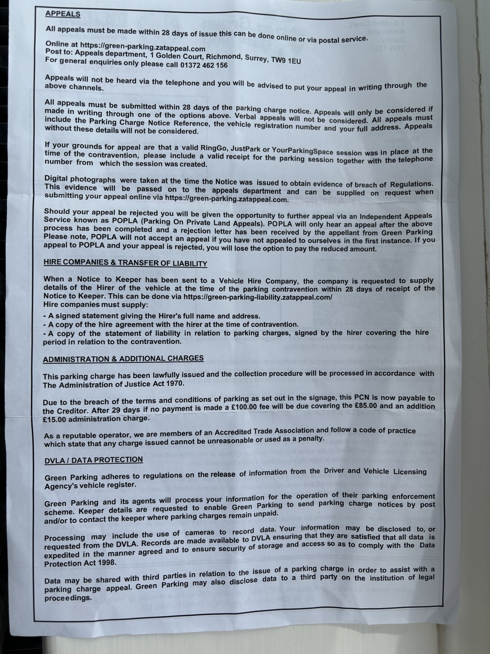 Umkomaas said:I don't think we've seen a Green Parking NtK. Could you post up both sides of it please, redacting your personal details, the VRM of your vehicle and any Green Parking reference numbers. Please leave all dates fully showing.