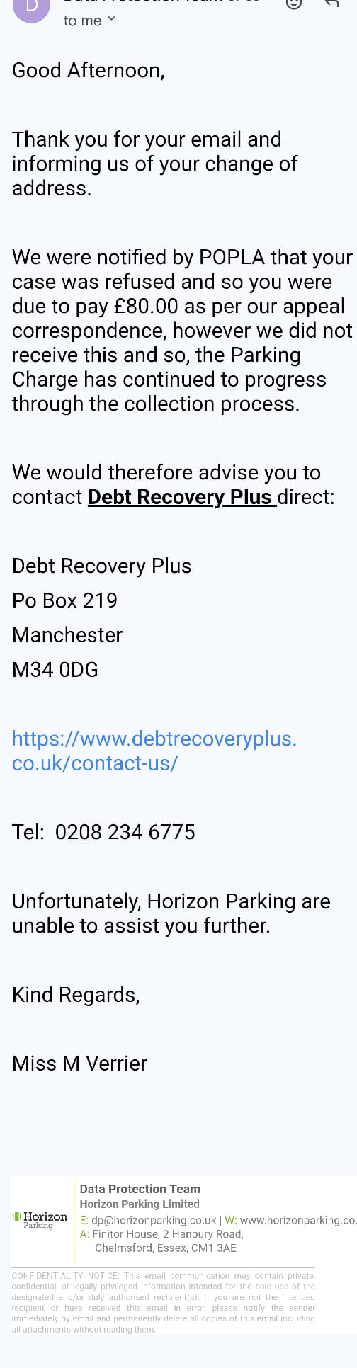 So, my POPLA appeal was rejected and I was sent a debt recovery letter. Please advise.