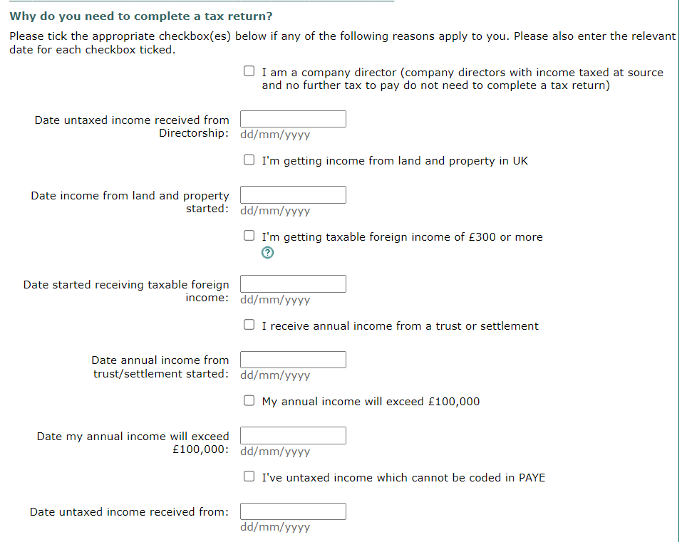 Gone on to to try and register but none od these options cover the ovee £10k from interest in savings or investments. What am i meant to select?