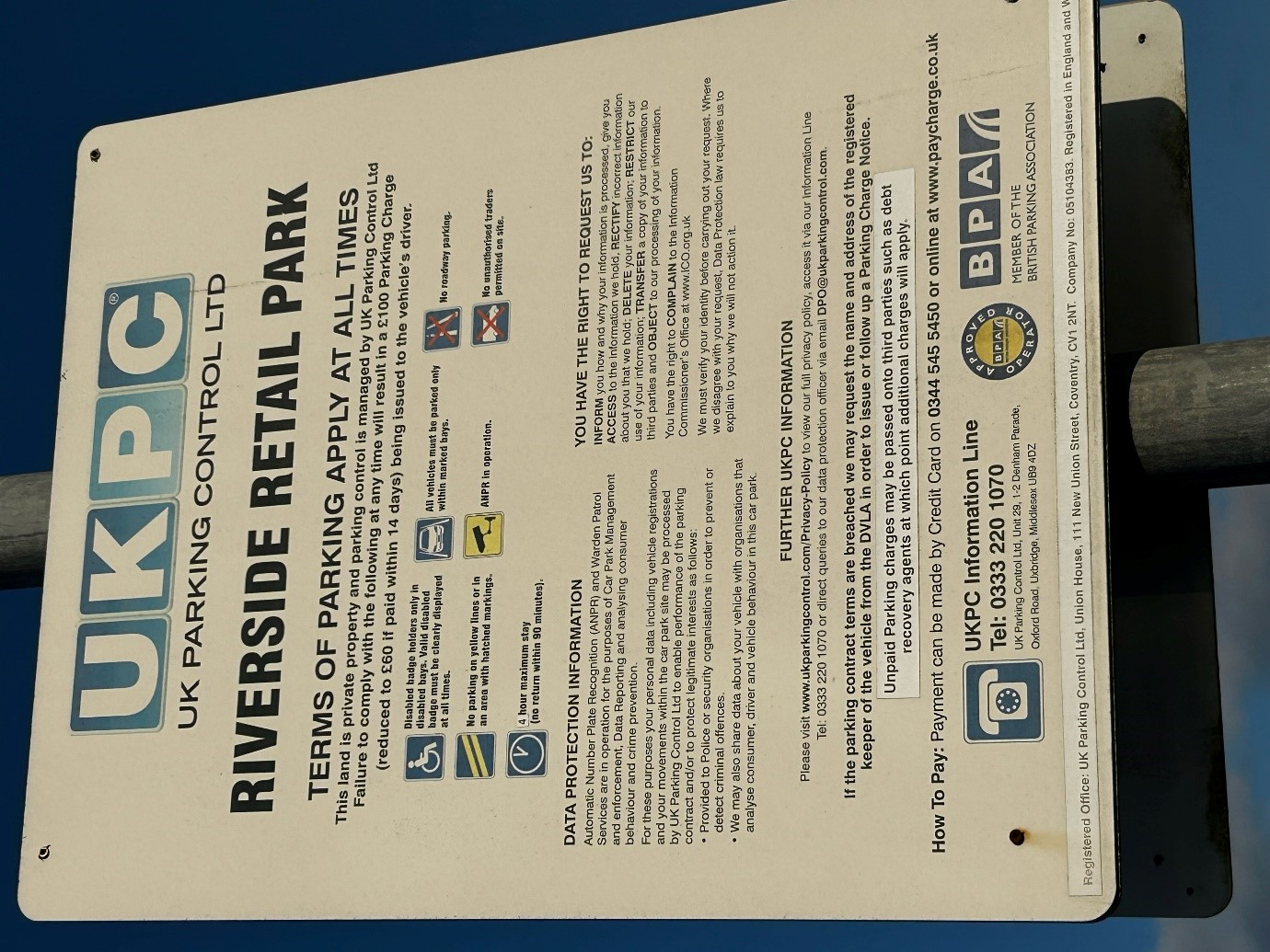 The retail park will cancel it the same day she complains if she is polite and conveys how upset she is and minded to boycott the place.PRIVATE 'PCN'? DON'T PAY BUT DON'T IGNORE IT (except N.Ireland).
