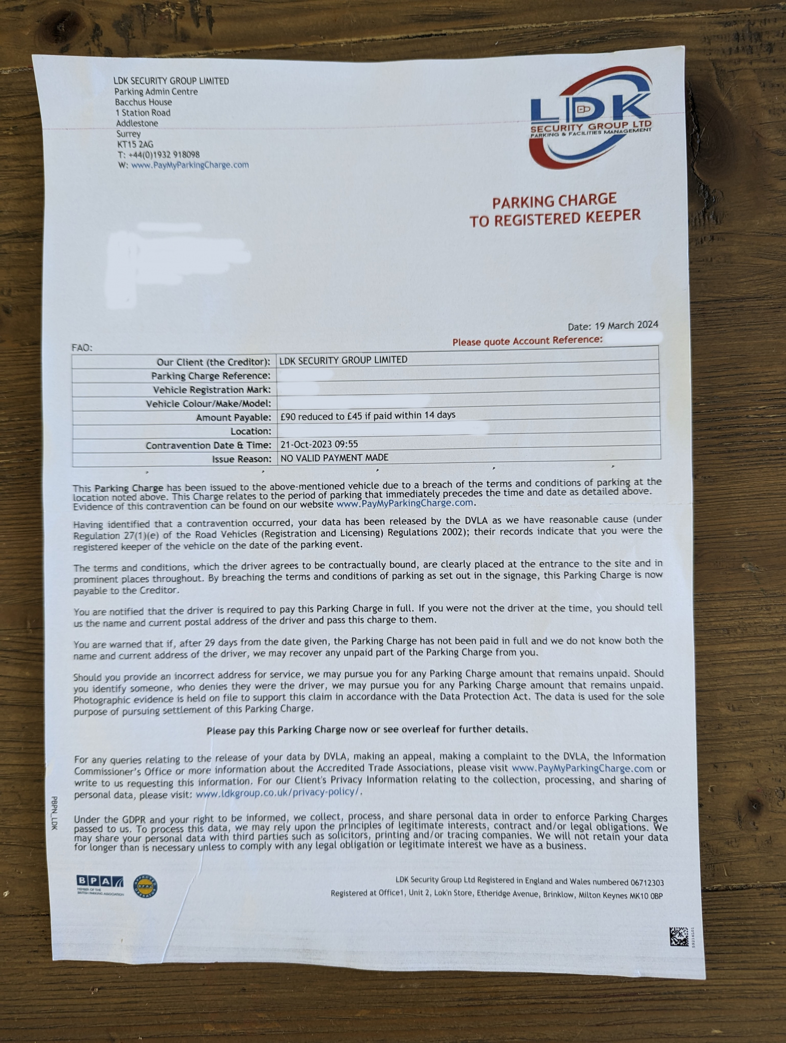 LDK Security Group LTD Parking & Facilities Management should not be stating that they have the right to recover the charge 'from you' the keeper. They don't. Clearly they have not complied with the POFA.airspacepark said:nopcns said: