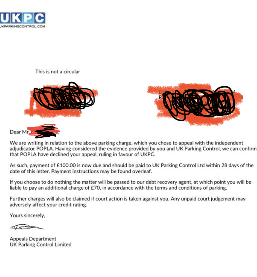 We thought this has gone away after we had appealed to POPLA, but today he has received this answer from UKPC. What should I be advising him to do next?