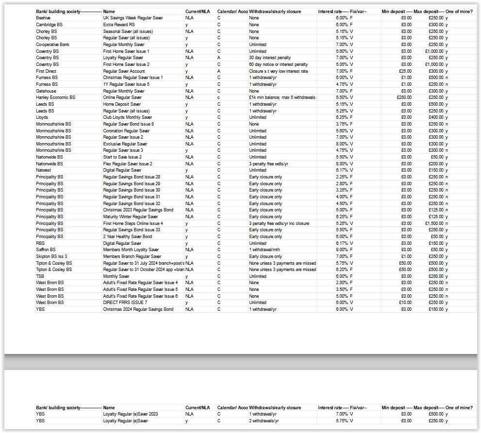 This list is probably not bang up to date now but you can see that different RSs have different withdrawal aand/or early closure rules. These are detailed in the Summary Box and in the T&Cs of each product[Deleted User] said:I was under the impression that your cash is fixed in regular savers usually.
