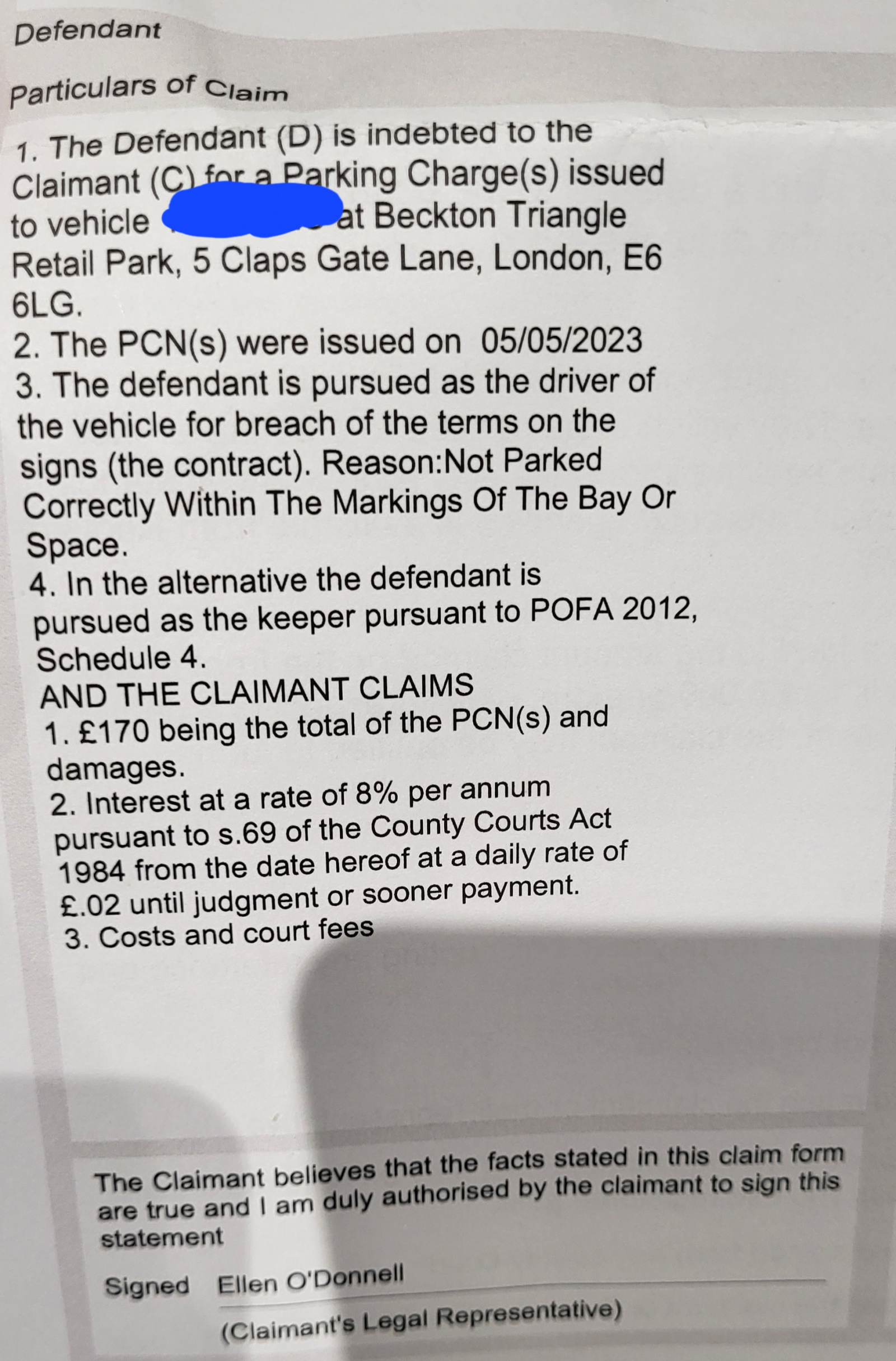 Hello All, I've recieved a letter from the County court to pay a fine for which I was parked outside of the marked bay in a retail park car park. It was a completely empty car park on a weekday afternoon- and I simply parked up to collect an item within 5mins and left. I initially appealed the PCN, but was rejected. I received several debt recovery letters whilst I was on holidays, and have now received the County court letter.