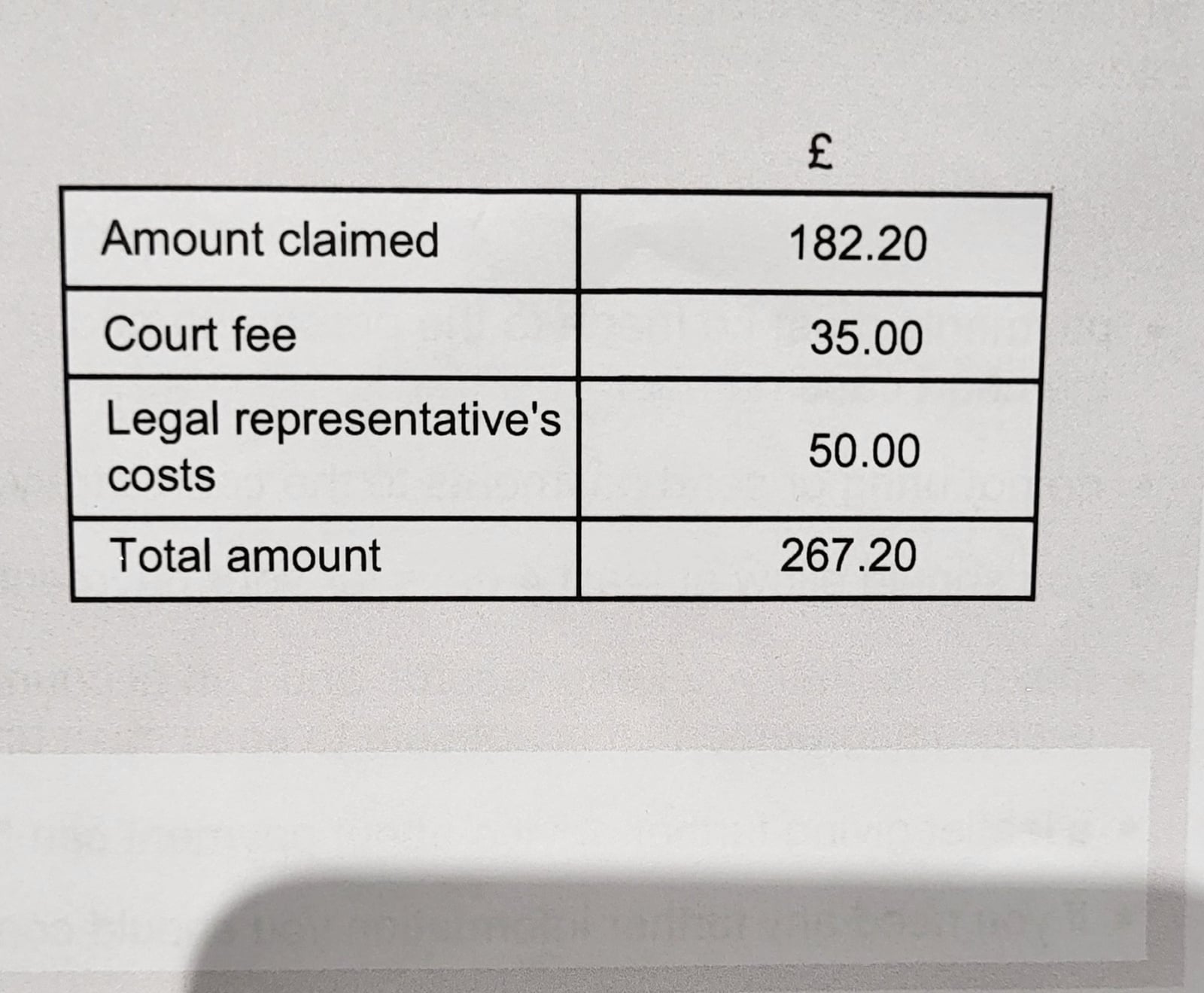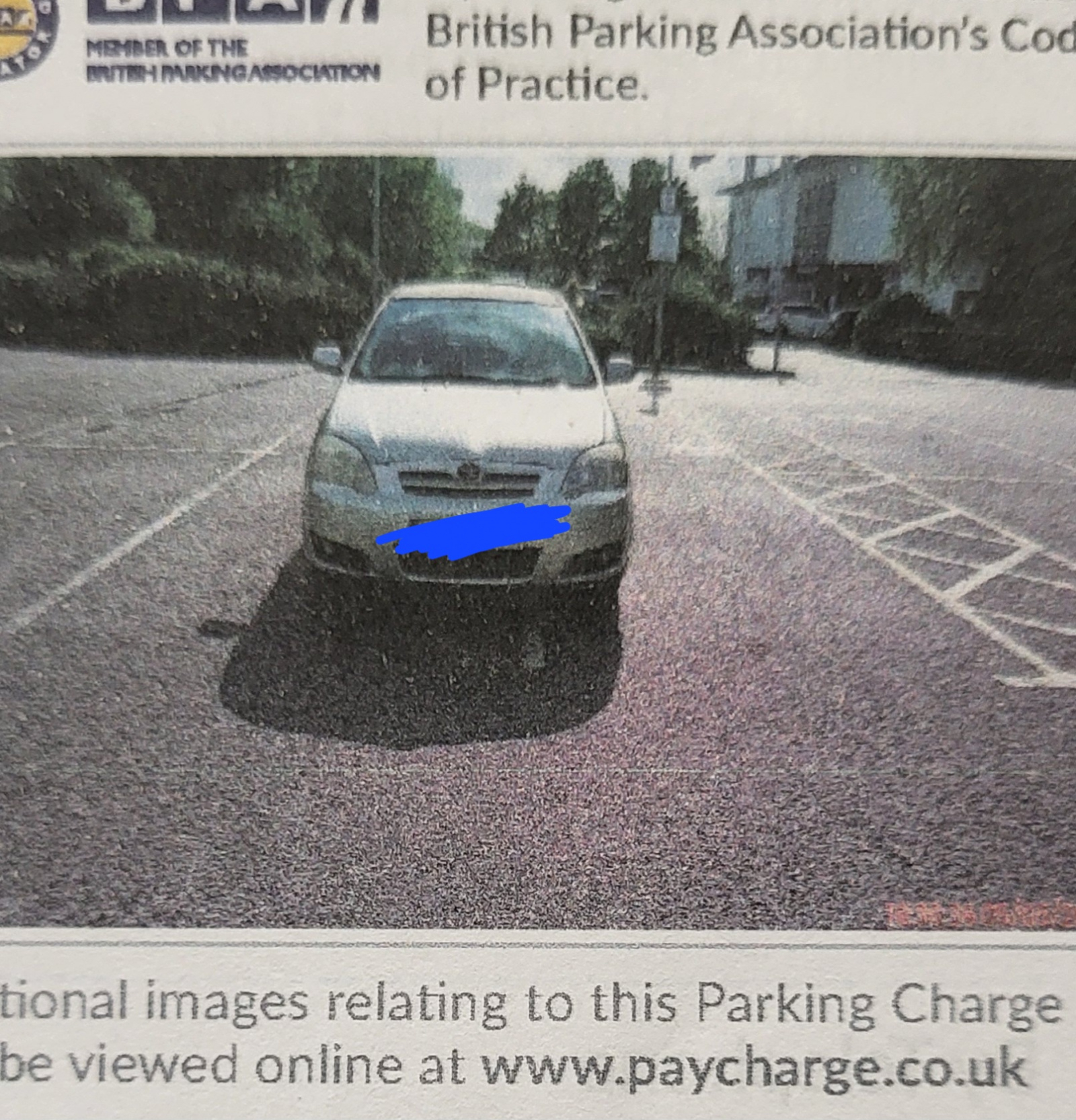 County Court letter - parked outside marked bay