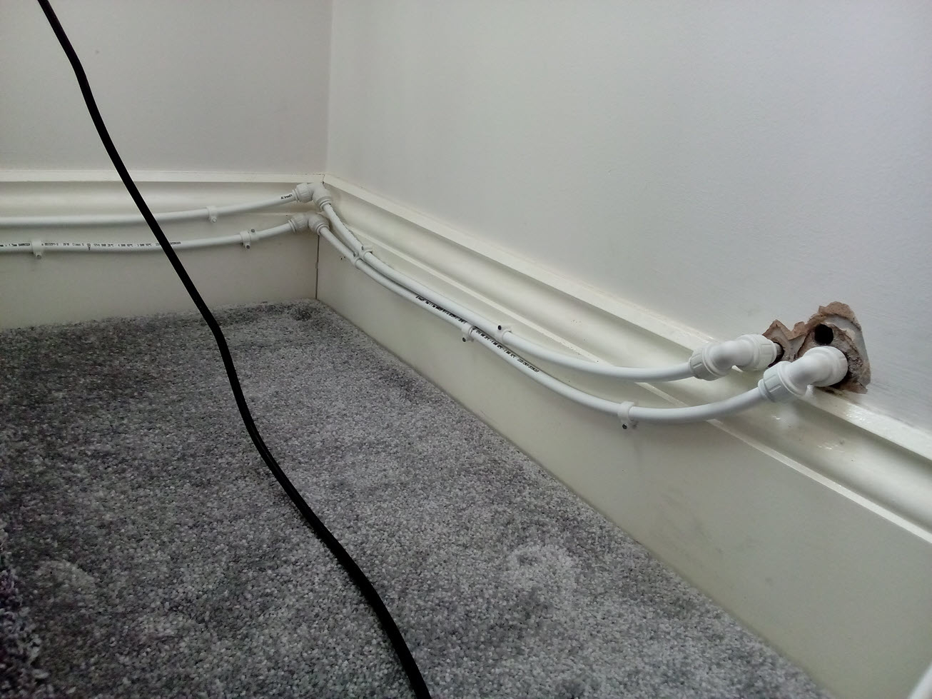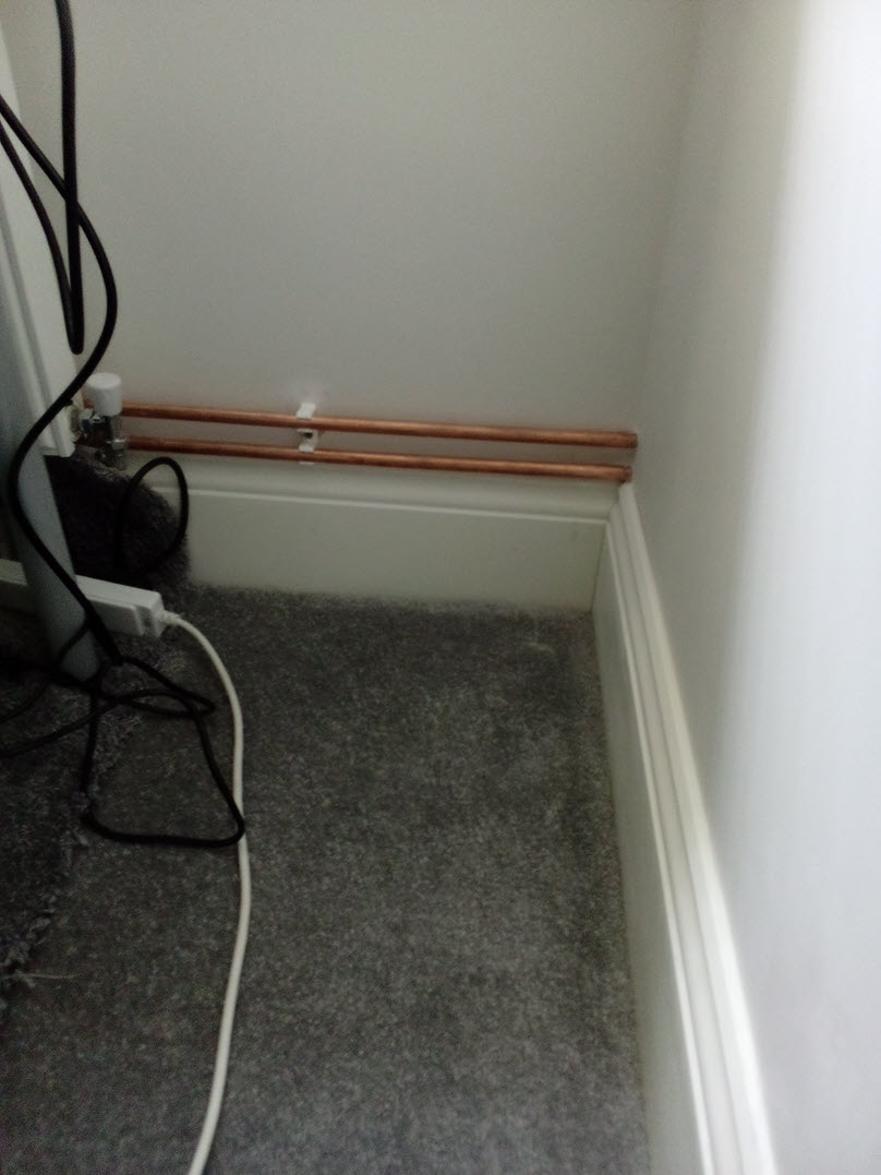 And here's the new rad on the opposite side of the wall, using a short run through the corner (like it should have been in the first place).