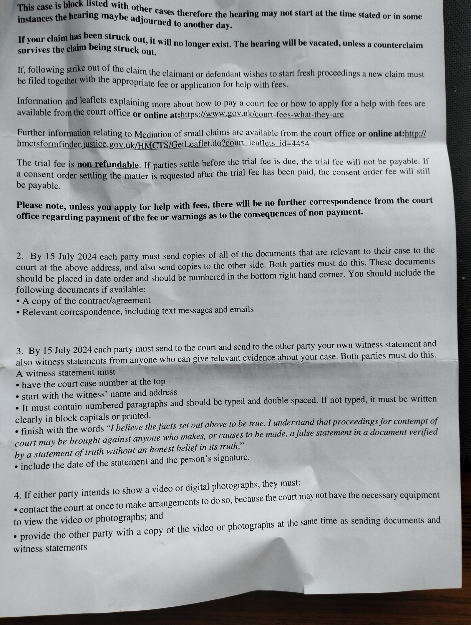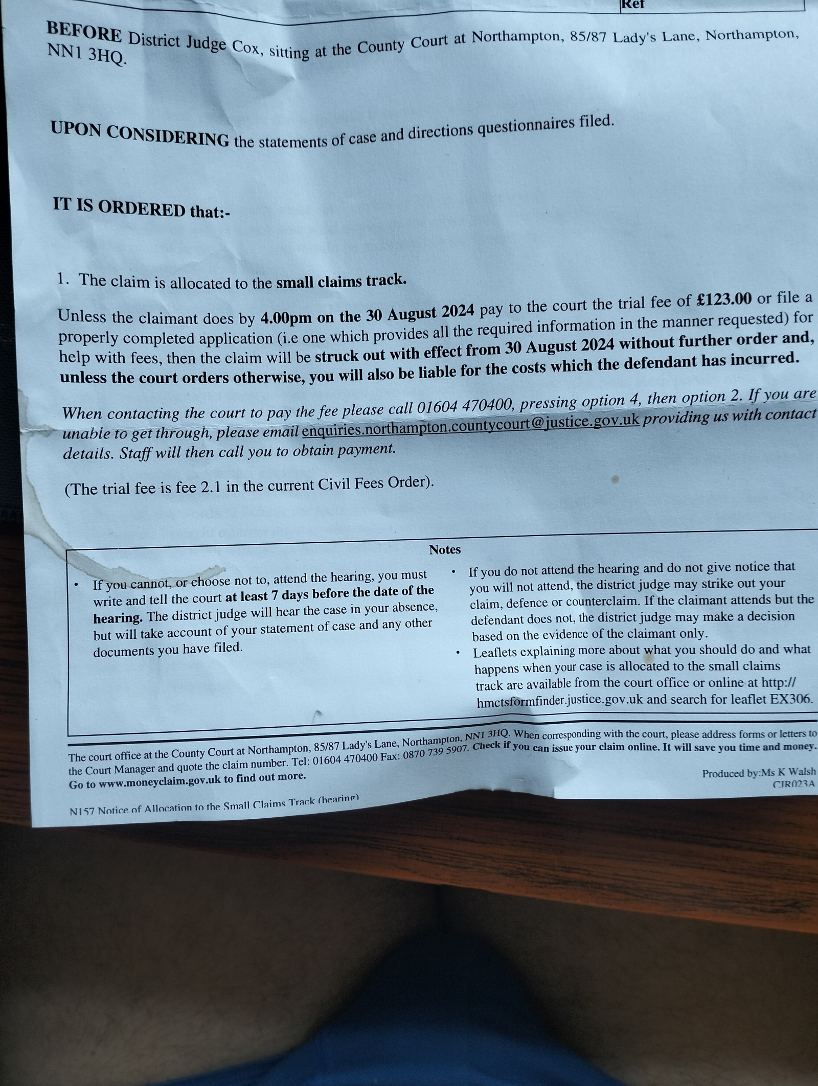 I'm not sure whether to pursue it further, we've just had the court date through for the 27th of September....it does however look like the claimant has failed to provide any of the relevant documents thus far to provide a case to defend.