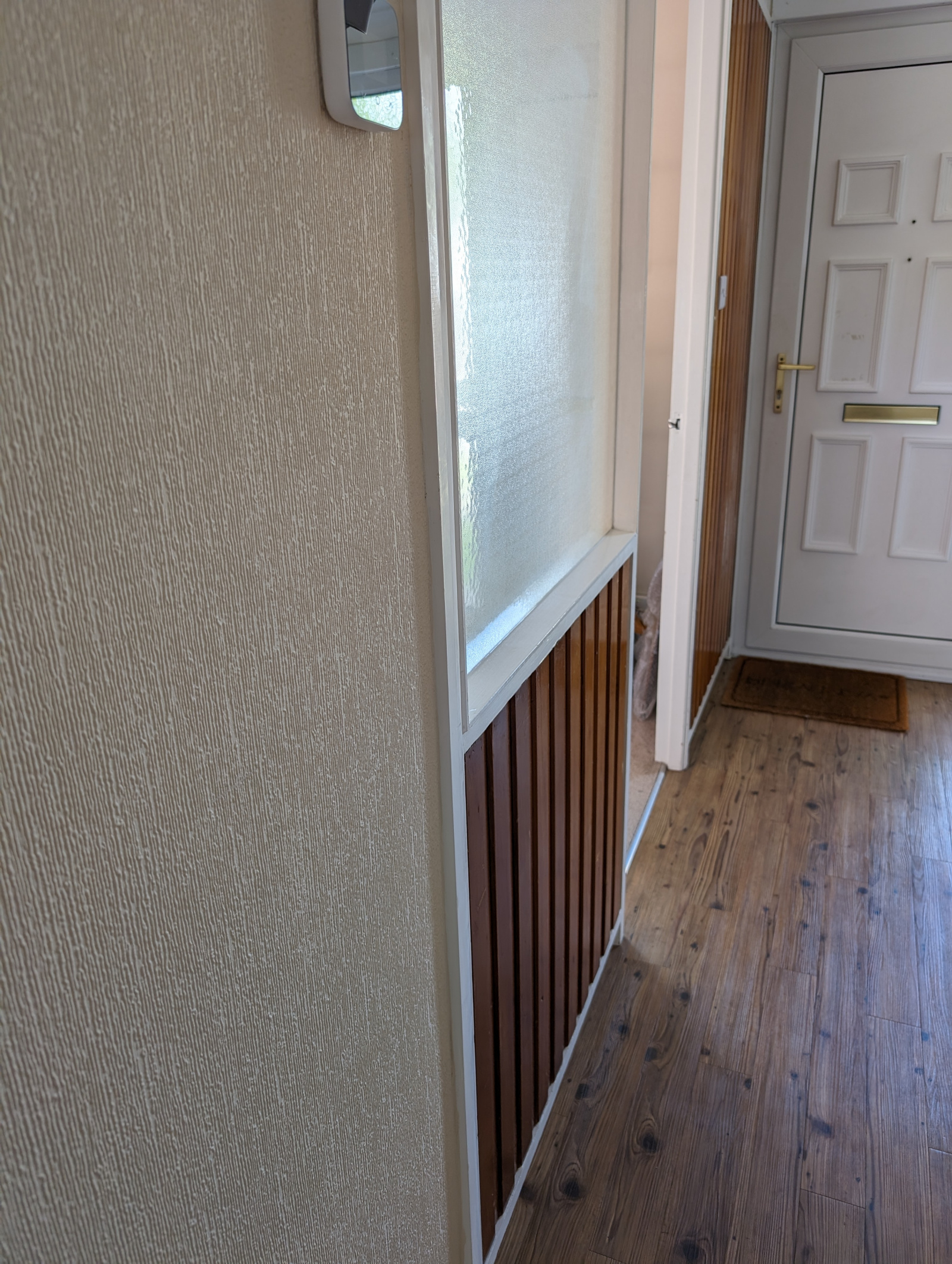 A portion of wall in my hallway looks like this. For obvious reasons I would like to do something with this.