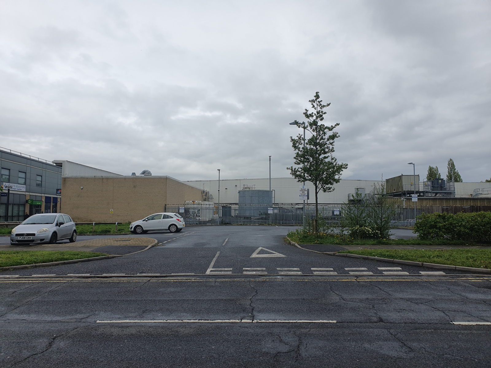 Entrance from across the road - Note the first sign on the fence, no signage anywhere to the left of this one they continue clockwise around back to the entry sign. I was parked either where the white car is or one of the adjacent spaces. Only 1 entrance sign too??