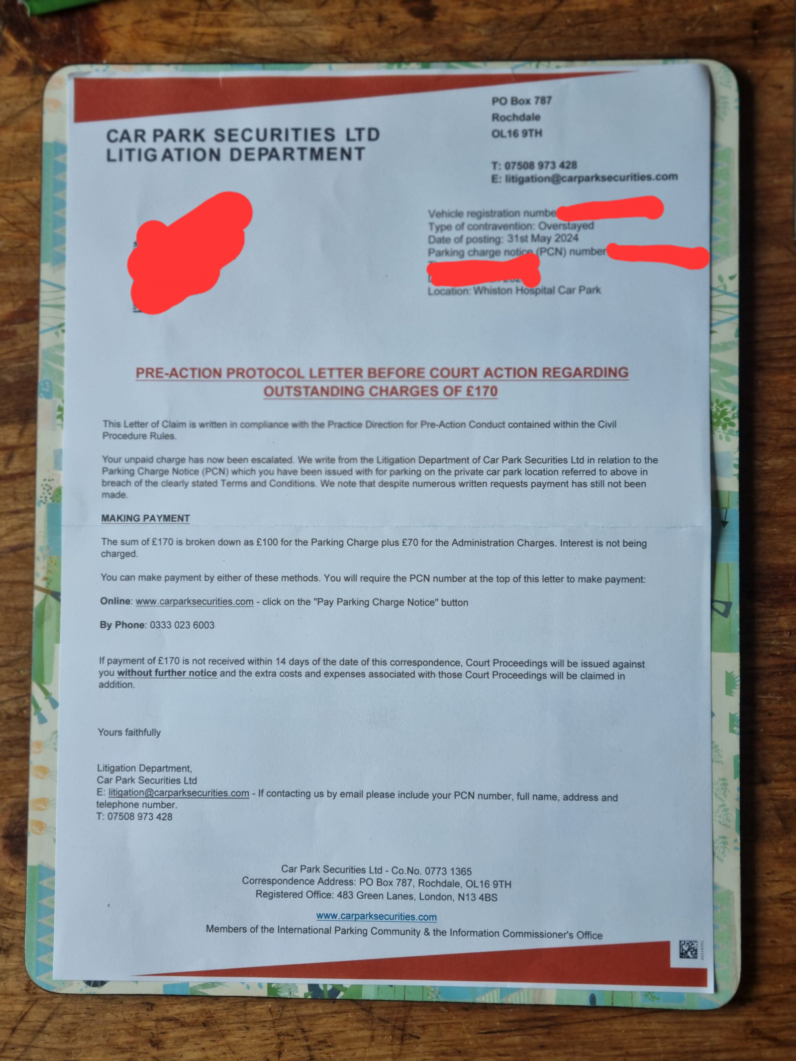Only a very minor point, but on the 1st post on the thread of NTKs https://forums.moneysavingexpert.com/discussion/6483542/a-thread-of-pictures-of-parking-firm-ntks/p1 it says the one I posted for Car Park Securities Ltd is POFA worded.