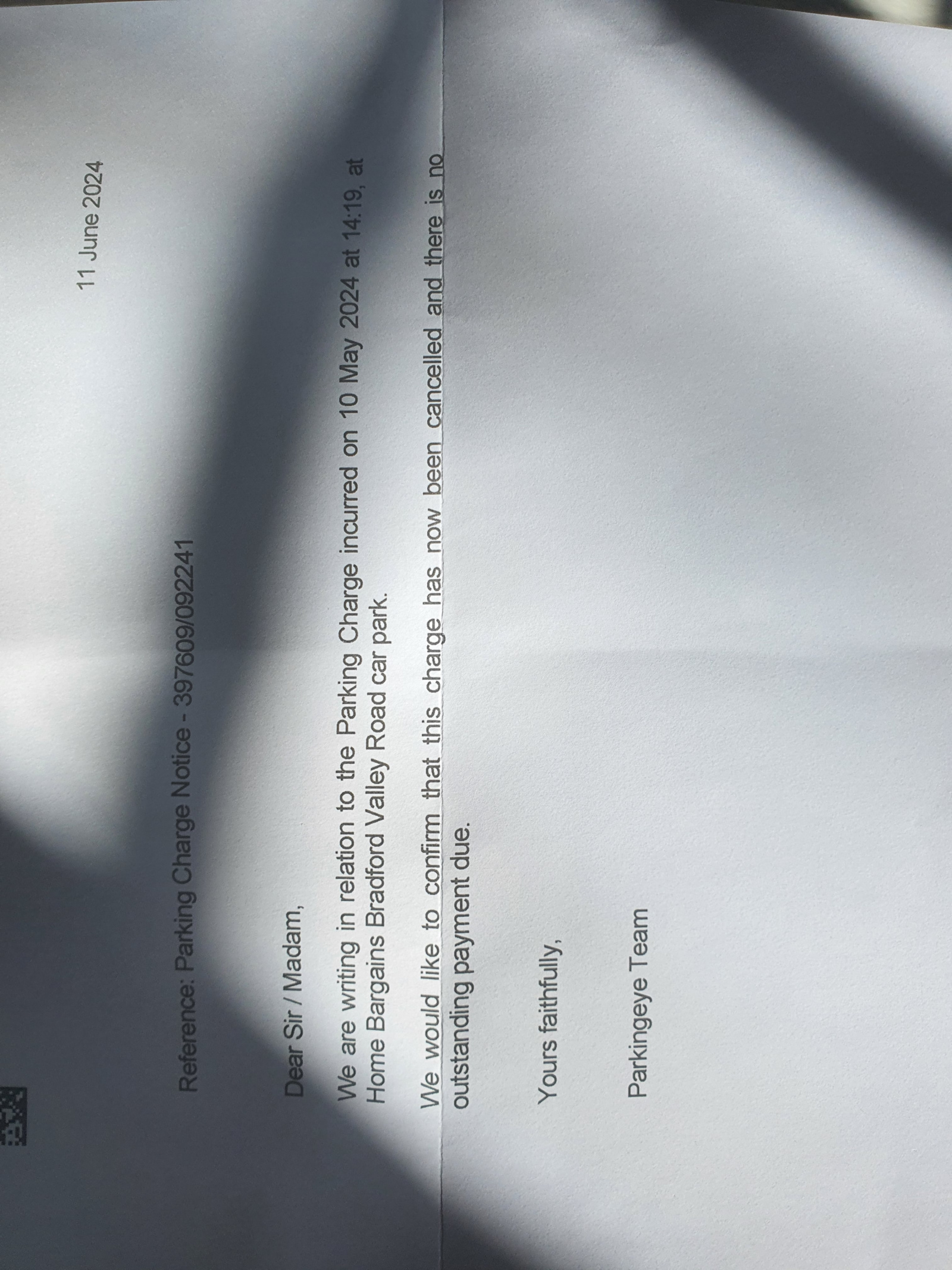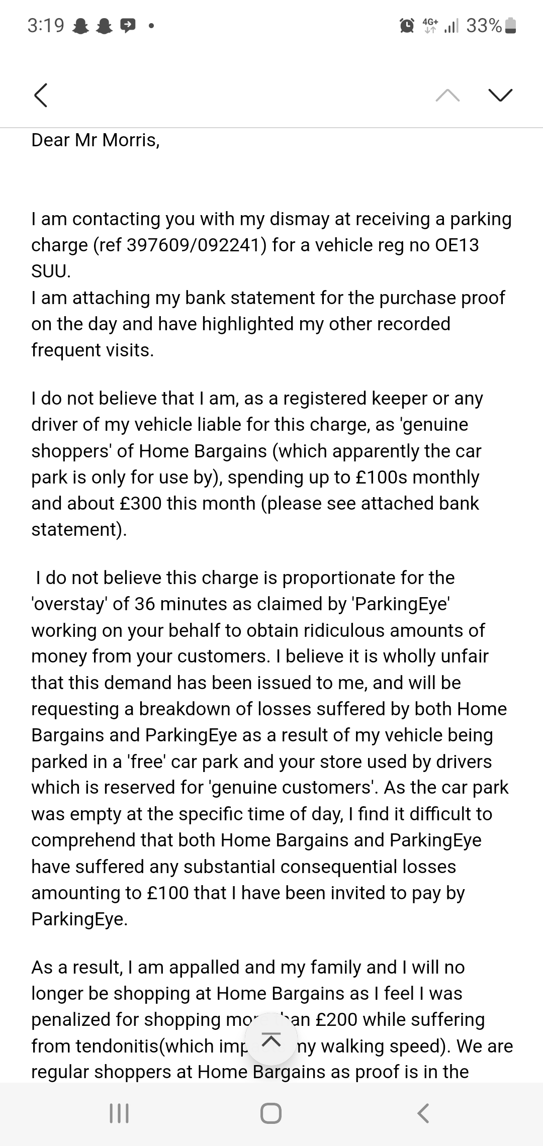 I spoke to team lead as manager was not in and he looked at my statement, took pic of the pcn and casually put the details in a handheld device informed me that I will not get any more letters from pe. I was a little skeptical as it was too easy but today ive received a letter from pe.