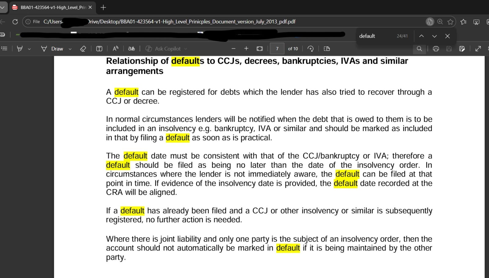 The default date must be consistent with that of the CCJ/bankruptcy or IVA; therefore a default should be filed as being no later than the date of the insolvency order. In circumstances where the lender is not immediately aware, the default can be filed at that point in time. If evidence of the insolvency date is provided, the default date recorded at the CRA will be aligned.