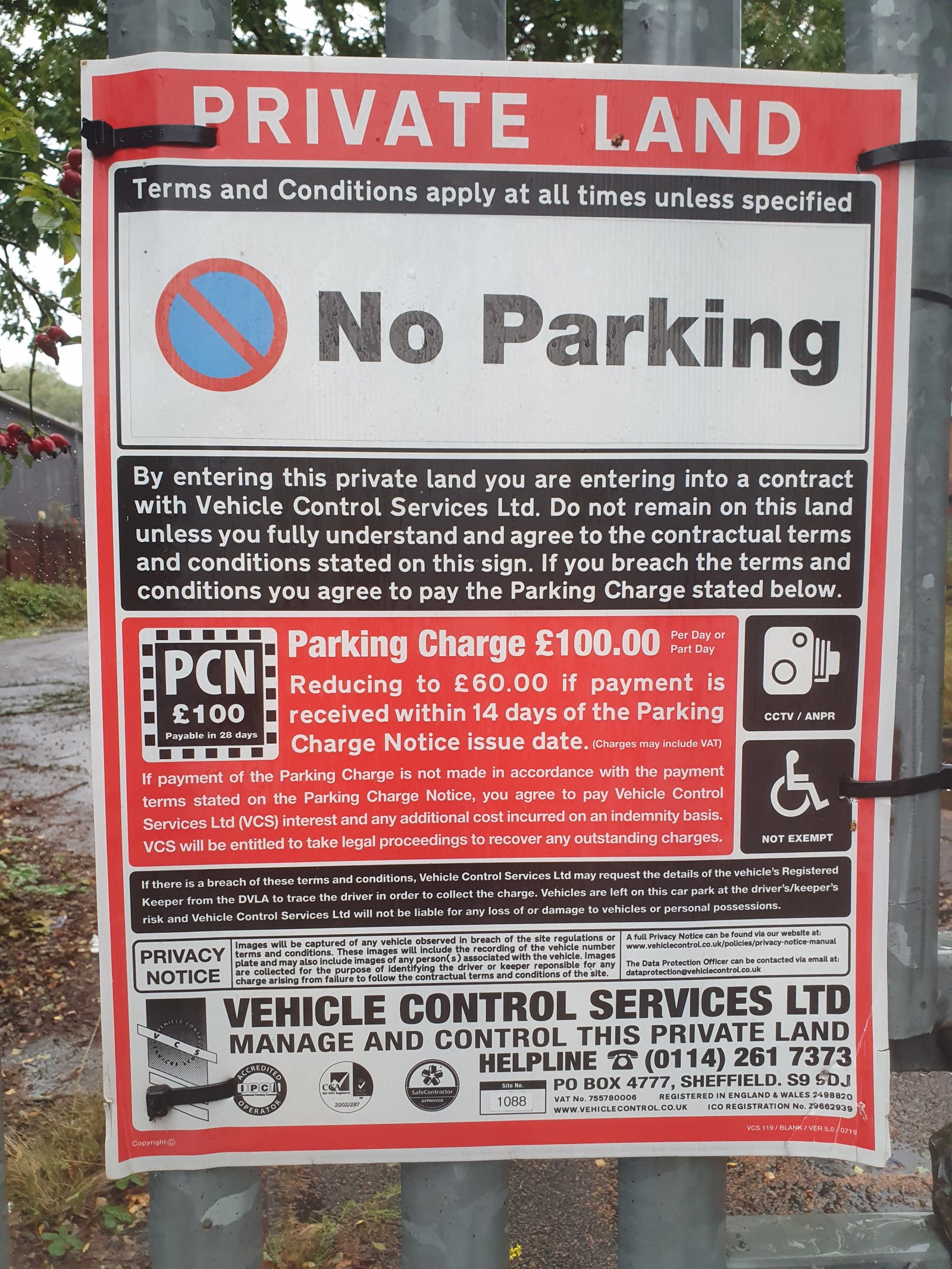 The sign is placed on an entry gate - a big part of my defence is that the wording strongly implies that passing the gate and 'entering this private land' (as opposed to 'having already entered this private' land) is what will incur a charge. Not parking on the roadside of the fence.0 -