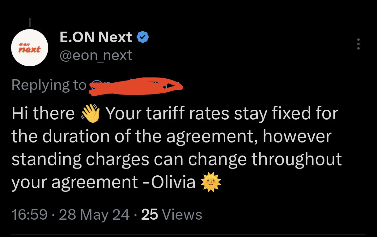 Just seen this on x , I'm coming to the end of my fixed and the standing charges for me have never gone up or down , is it just !!!!!! from eon🤷